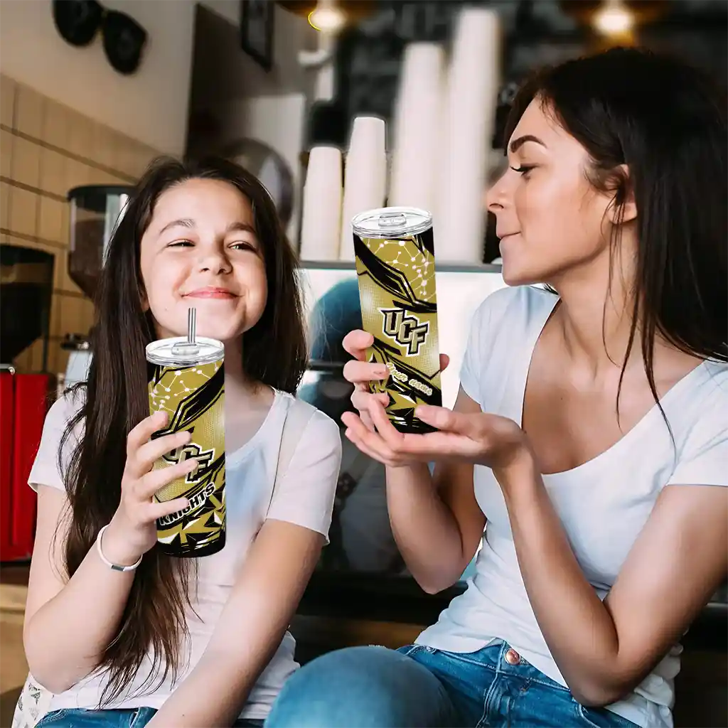 Made from premium stainless steel, this tumbler is built to last. The bold UCF Knights logo proudly represents your team, while the ergonomic design fits comfortably in your hand for easy carrying. Whether you're cheering in the stands, catching up with friends, or just out and about, this tumbler is the perfect fan accessory, combining style and function to keep you hydrated in true NCAA spirit.