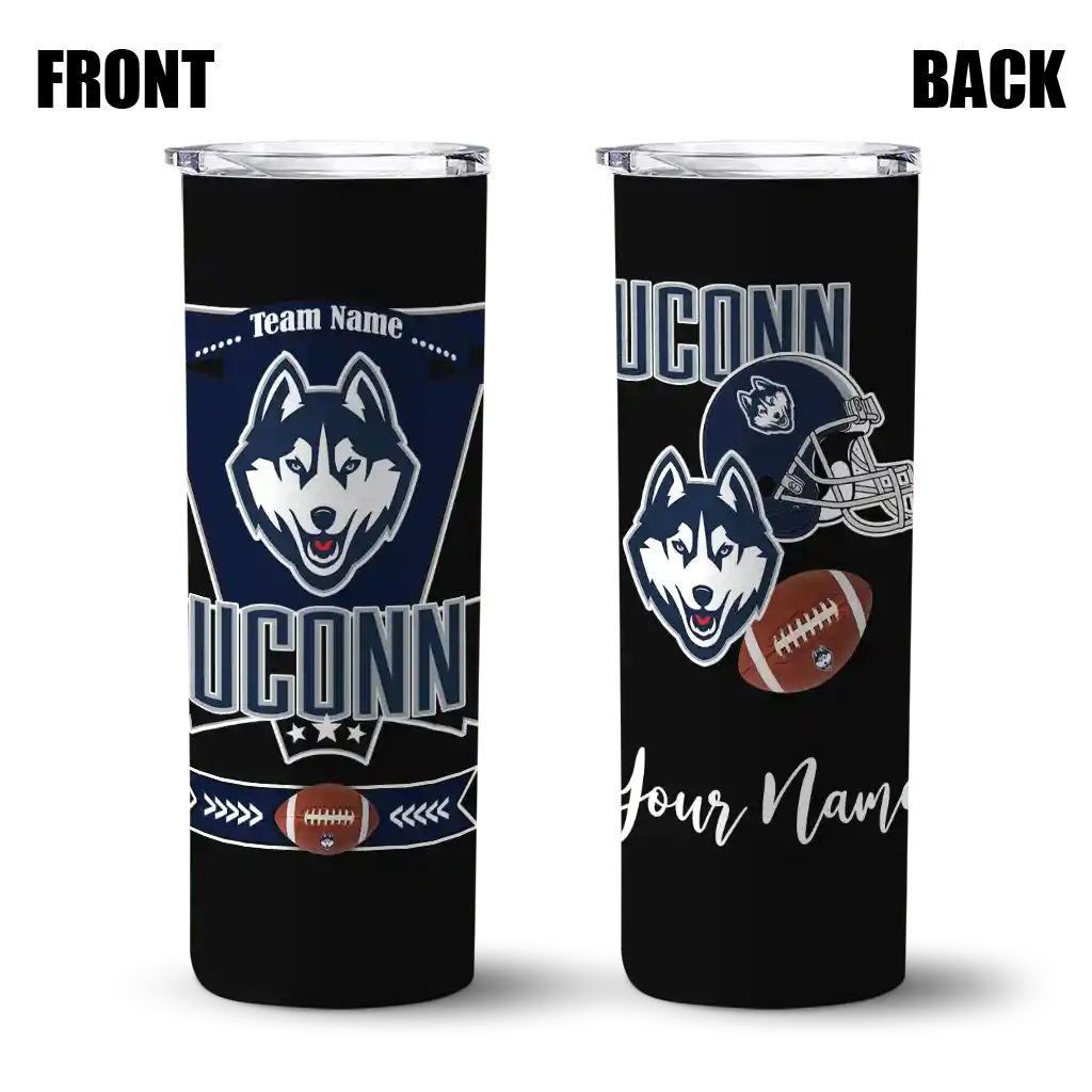 Customized UConn Huskies Helmet Belt Blue Black Skinny Tumbler