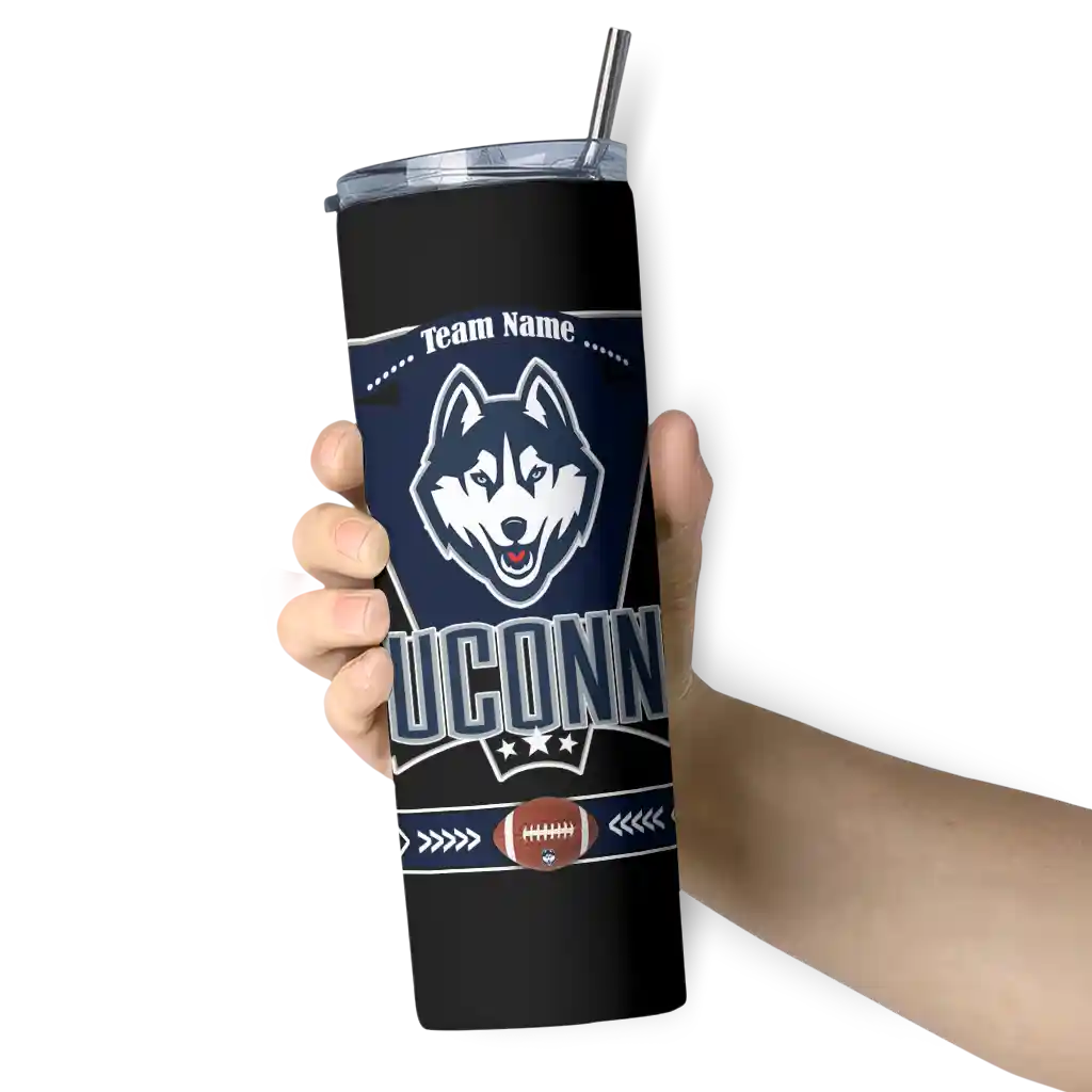 Made from premium stainless steel, this tumbler is built to last. The bold UConn Huskies logo proudly represents your team, while the ergonomic design fits comfortably in your hand for easy carrying. Whether you're cheering in the stands, catching up with friends, or just out and about, this tumbler is the perfect fan accessory, combining style and function to keep you hydrated in true NCAA spirit.