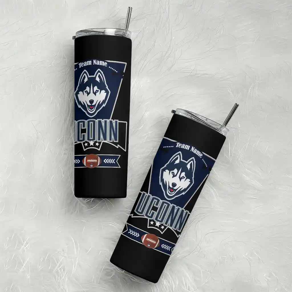 The Customized UConn Huskies Helmet Belt Blue Black Skinny Tumbler tumbler is the perfect way to stay refreshed while showing off your pride for UConn Huskies. With its double-wall insulation, your drinks stay at the right temperature for hours, whether you're enjoying a hot coffee or keeping your iced drink cold. What's inside? You’ll find 1 stainless steel tumbler, 1 clear lid, and 1 removable straw. It's the perfect blend of function and fan spirit! Ergonomically designed for comfort, made from durable stainless steel, and insulated to maintain your drink’s temperature, this tumbler is a must-have for any dedicated NCAA fan.