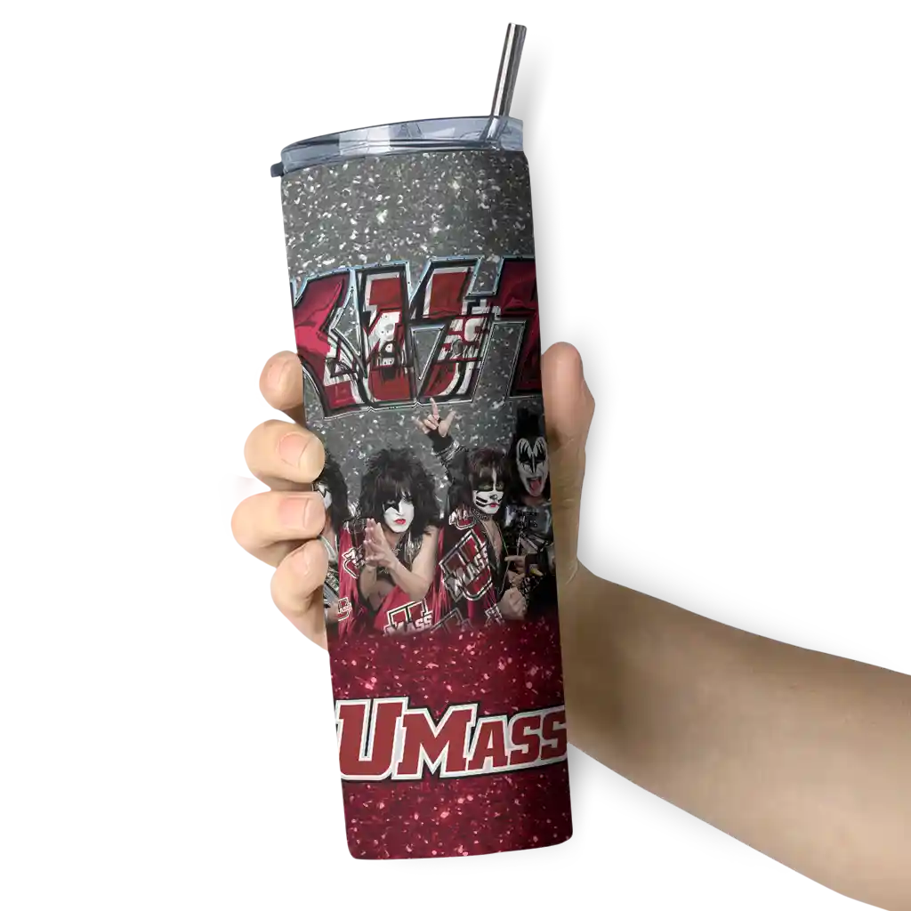 Customized UMass Minutemen Kiss Band Grey Skinny Tumbler