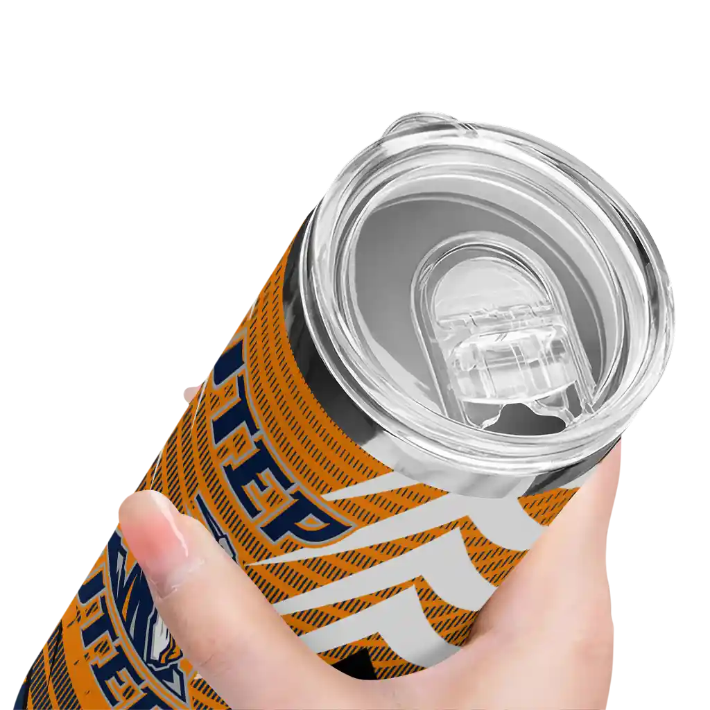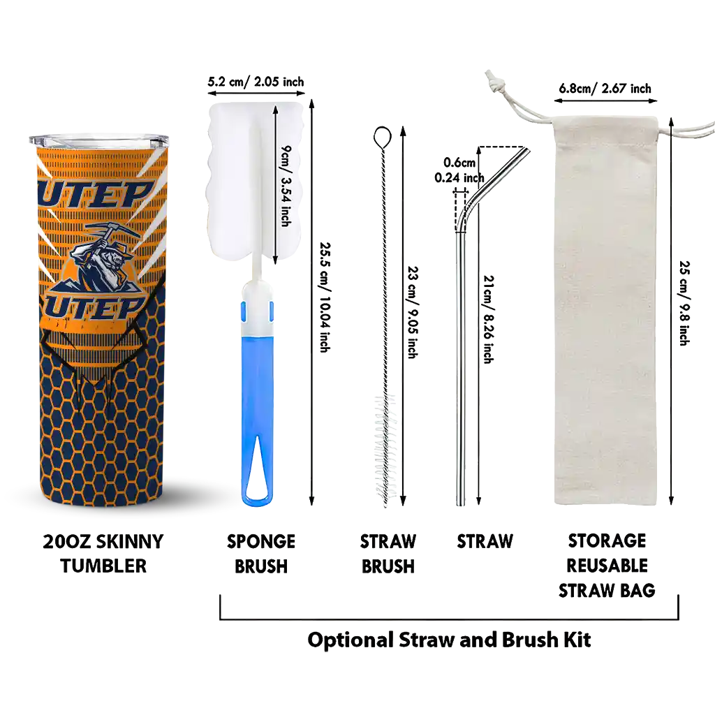 The Customized UTEP Miners Chevron Stripes Blue Skinny Tumbler tumbler is the perfect way to stay refreshed while showing off your pride for UTEP Miners. With its double-wall insulation, your drinks stay at the right temperature for hours, whether you're enjoying a hot coffee or keeping your iced drink cold. What's inside? You’ll find 1 stainless steel tumbler, 1 clear lid, and 1 removable straw. It's the perfect blend of function and fan spirit! Ergonomically designed for comfort, made from durable stainless steel, and insulated to maintain your drink’s temperature, this tumbler is a must-have for any dedicated NCAA fan.