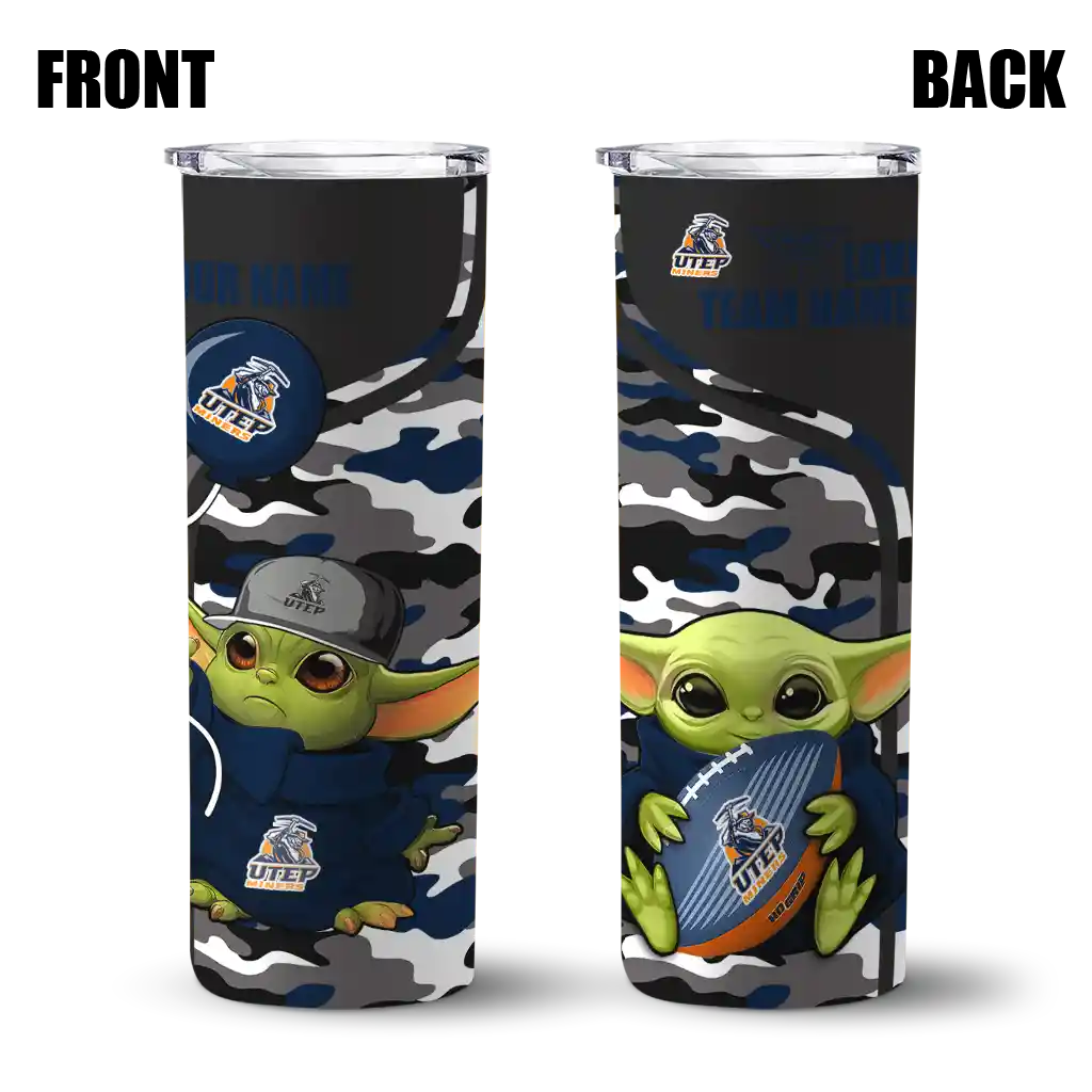 Customized UTEP Miners Yoda Camo Blue Black Skinny Tumbler