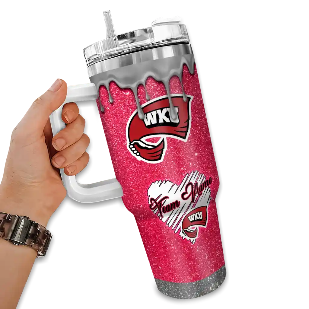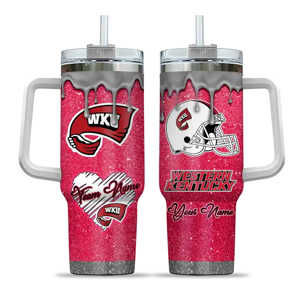 Western Kentucky Hilltoppers Curved Tumbler – Customized Heart Helmet Motif Red
