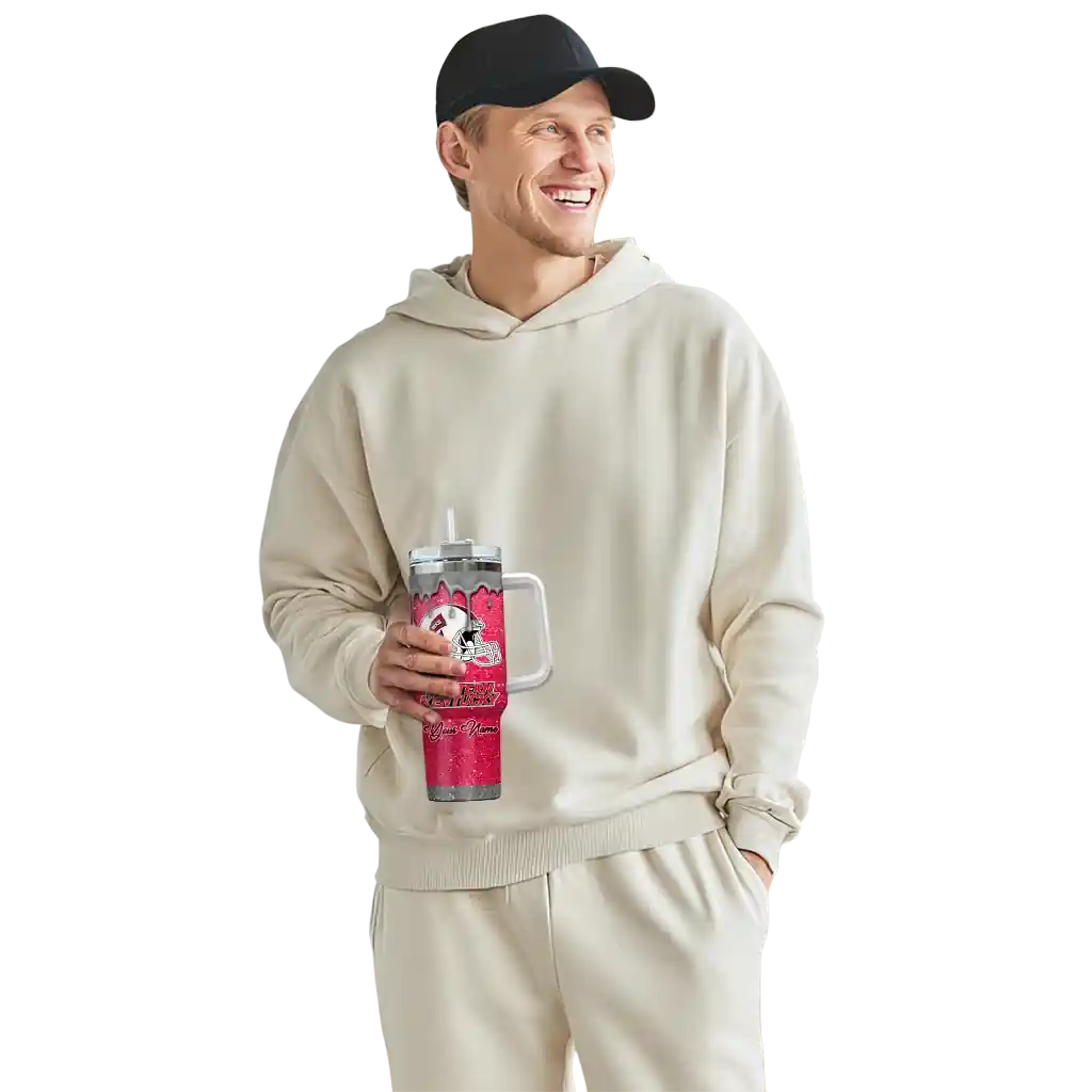 The Western Kentucky Hilltoppers Curved Tumbler – Customized Heart Helmet Motif Red is a double-wall insulated stainless steel tumbler designed to maintain your beverage’s ideal temperature. It features an ergonomic curved design for an easy grip and a tough stainless steel build. The item includes the tumbler, a clear lid, and a removable straw. It is easy to clean and low-maintenance. You can personalize this tumbler by adding both a custom name and number of your choice during the ordering process.
