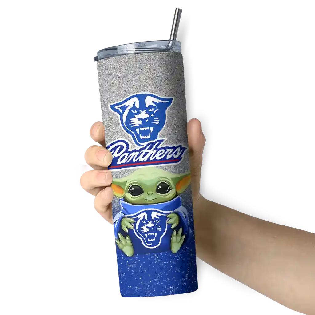 The Georgia State Panthers Yoda Smile Blue Skinny Tumbler tumbler is the perfect way to stay refreshed while showing off your pride for Georgia State Panthers. With its double-wall insulation, your drinks stay at the right temperature for hours, whether you're enjoying a hot coffee or keeping your iced drink cold. What's inside? You’ll find 1 stainless steel tumbler, 1 clear lid, and 1 removable straw. It's the perfect blend of function and fan spirit! Ergonomically designed for comfort, made from durable stainless steel, and insulated to maintain your drink’s temperature, this tumbler is a must-have for any dedicated NCAA fan.