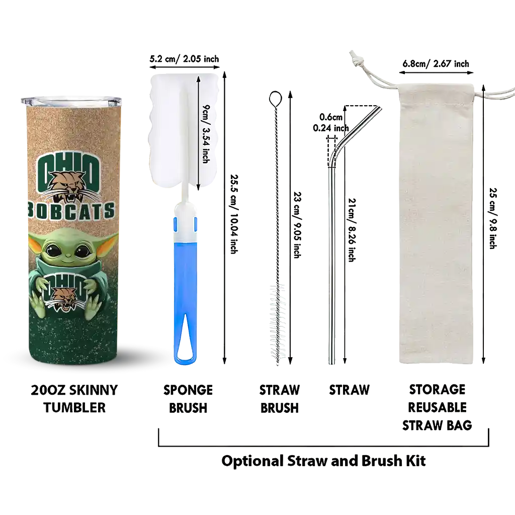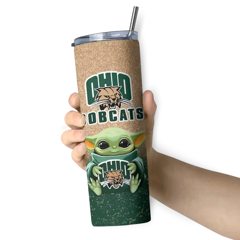 The Ohio Bobcats Yoda Smile Green Skinny Tumbler tumbler is the perfect way to stay refreshed while showing off your pride for Ohio Bobcats. With its double-wall insulation, your drinks stay at the right temperature for hours, whether you're enjoying a hot coffee or keeping your iced drink cold. What's inside? You’ll find 1 stainless steel tumbler, 1 clear lid, and 1 removable straw. It's the perfect blend of function and fan spirit! Ergonomically designed for comfort, made from durable stainless steel, and insulated to maintain your drink’s temperature, this tumbler is a must-have for any dedicated NCAA fan.