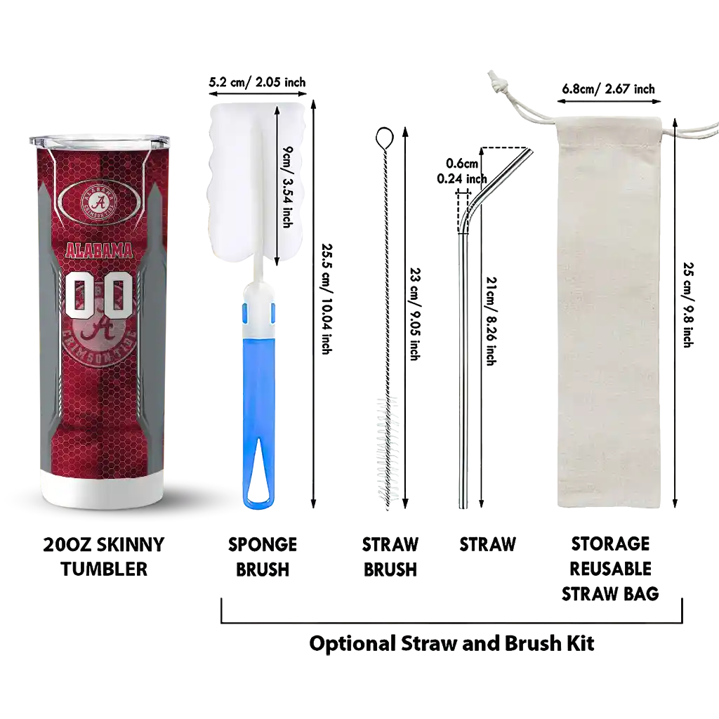 The Personalized Alabama Crimson Tide Stacked Diamond Crimson Skinny Tumbler tumbler is the perfect way to stay refreshed while showing off your pride for Alabama Crimson Tide. With its double-wall insulation, your drinks stay at the right temperature for hours, whether you're enjoying a hot coffee or keeping your iced drink cold. What's inside? You’ll find 1 stainless steel tumbler, 1 clear lid, and 1 removable straw. It's the perfect blend of function and fan spirit! Ergonomically designed for comfort, made from durable stainless steel, and insulated to maintain your drink’s temperature, this tumbler is a must-have for any dedicated NCAA fan.