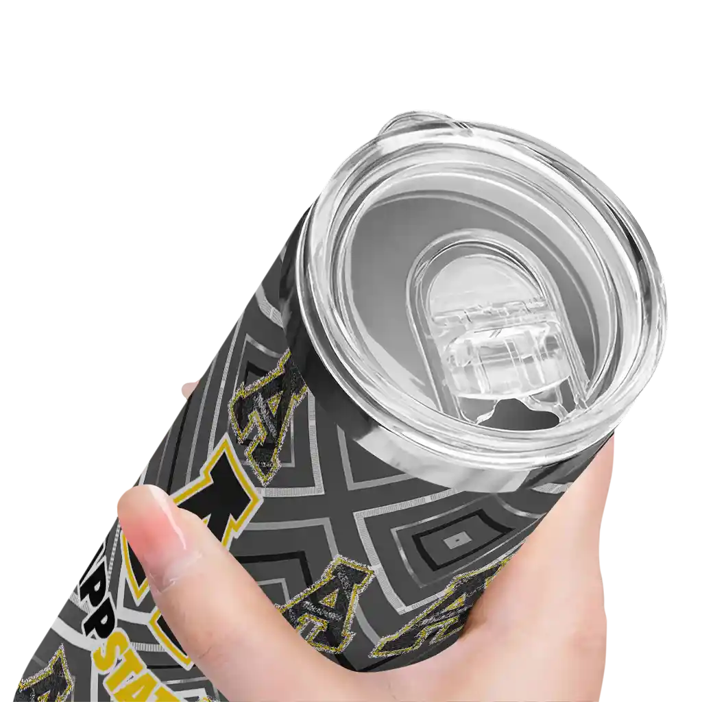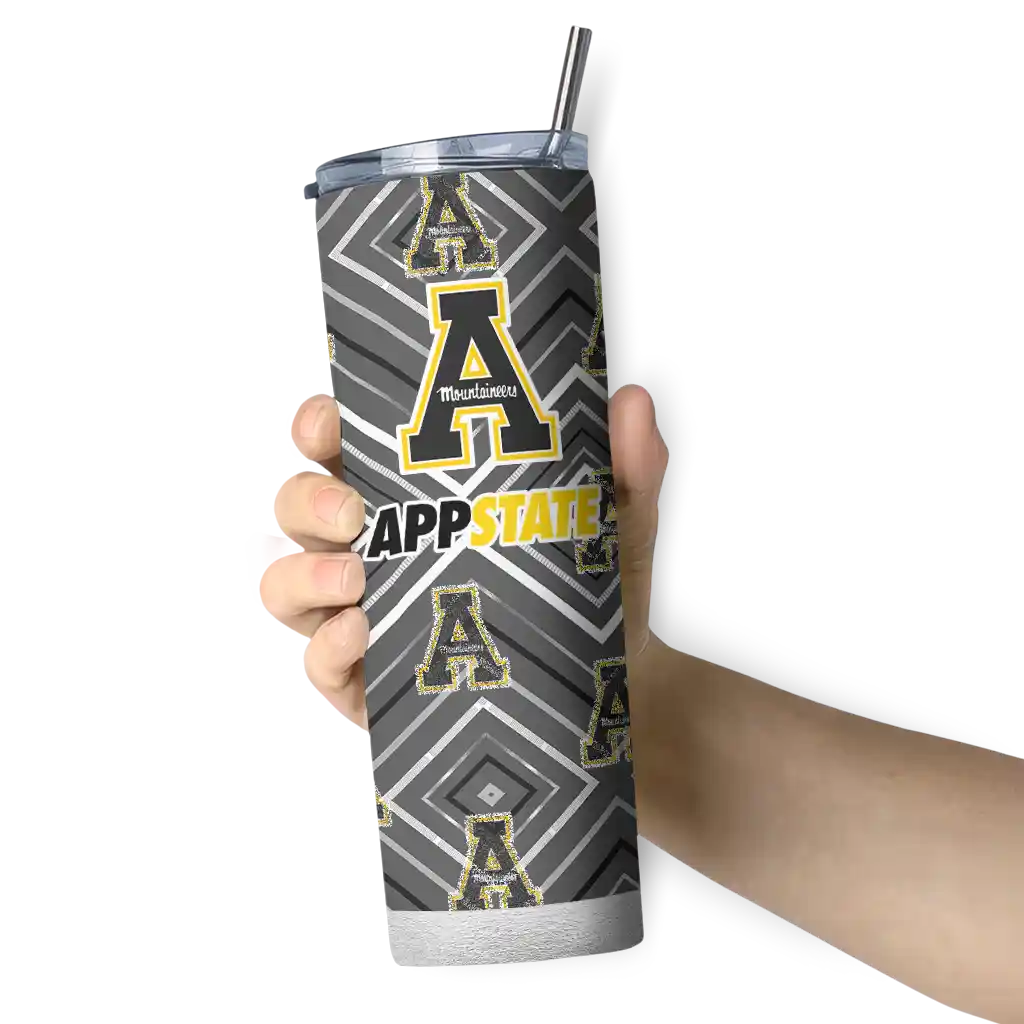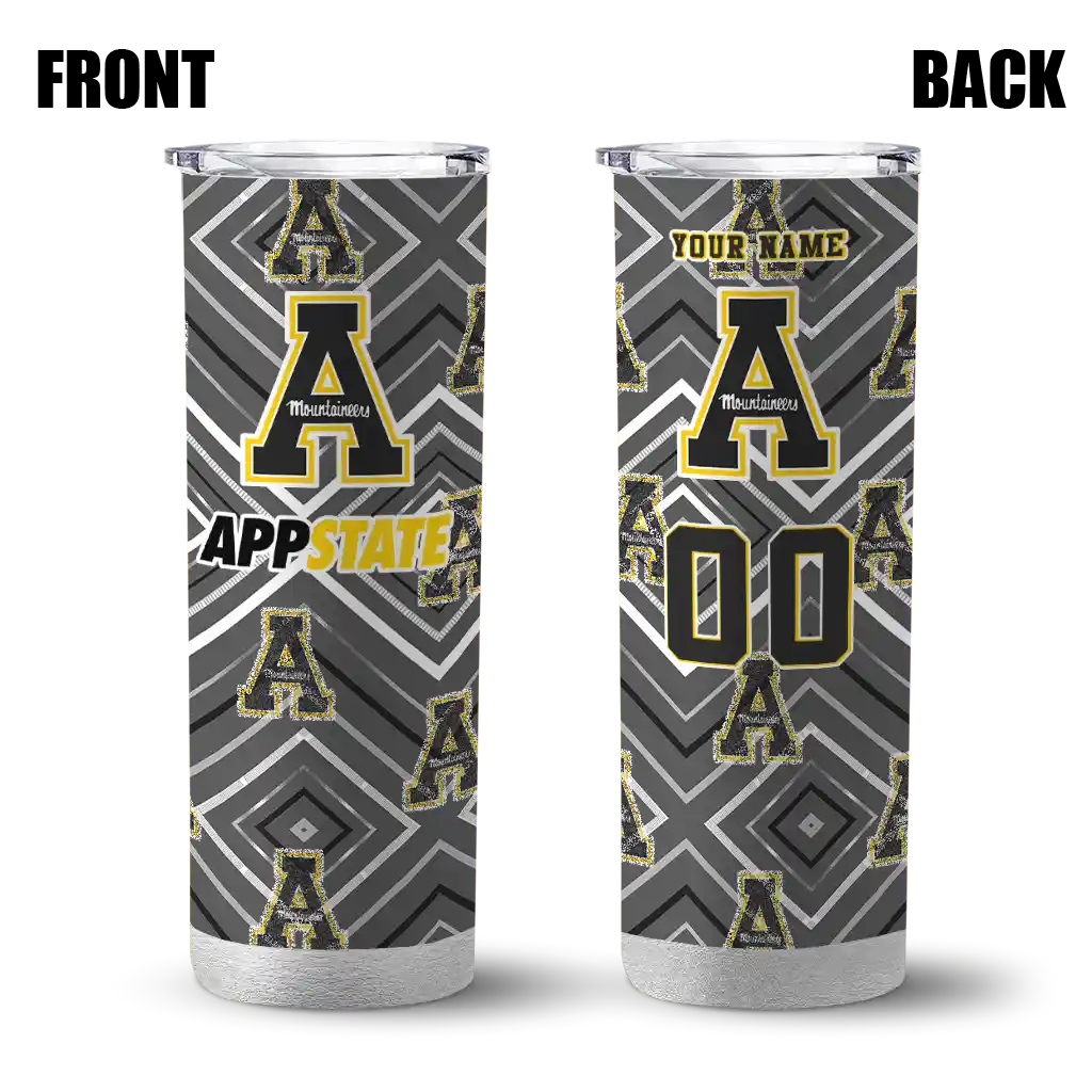 The Customized Appalachian State Mountaineers Chevron Stripes Black Skinny Tumbler tumbler is the perfect way to stay refreshed while showing off your pride for Appalachian State Mountaineers. With its double-wall insulation, your drinks stay at the right temperature for hours, whether you're enjoying a hot coffee or keeping your iced drink cold. What's inside? You’ll find 1 stainless steel tumbler, 1 clear lid, and 1 removable straw. It's the perfect blend of function and fan spirit! Ergonomically designed for comfort, made from durable stainless steel, and insulated to maintain your drink’s temperature, this tumbler is a must-have for any dedicated NCAA fan.