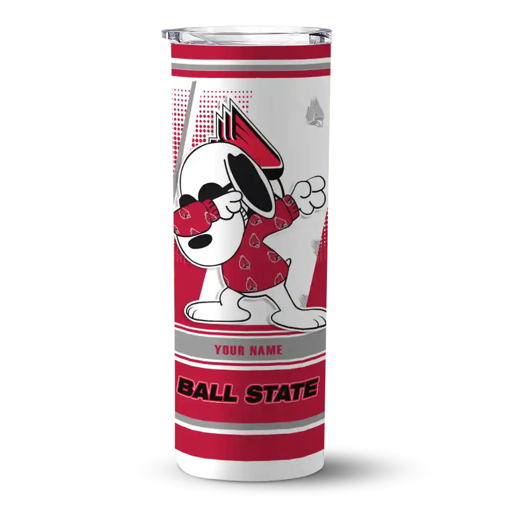 Personalized Ball State Cardinals Snoopy Dog Red White Skinny Tumbler