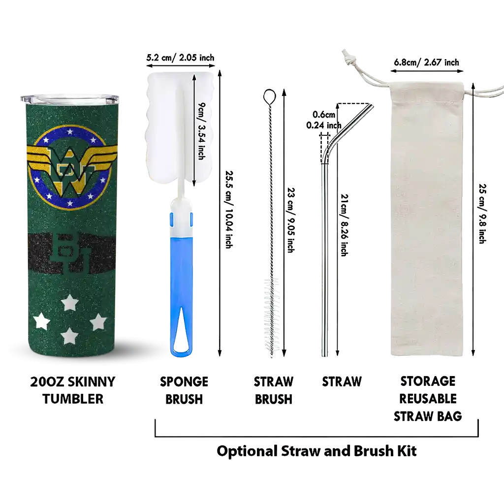 No question about it—the Custom Baylor Bears Superman Shield Green Gray Curved Tumbler is the ultimate way to stay refreshed while rocking your Baylor Bears pride. From the stadium to your tailgate, or just chilling at home, this sleek tumbler makes sure you stay hydrated in style. What’s in the box? A stainless steel tumbler, clear lid, and removable straw—all the essentials for keeping your favorite drinks on point!