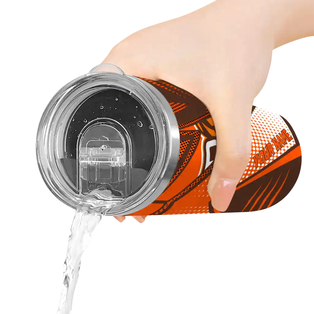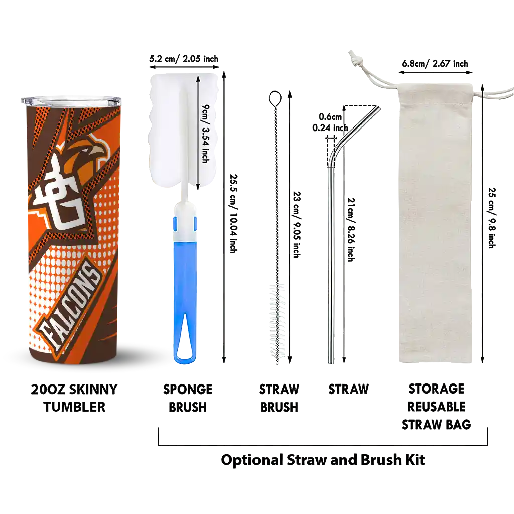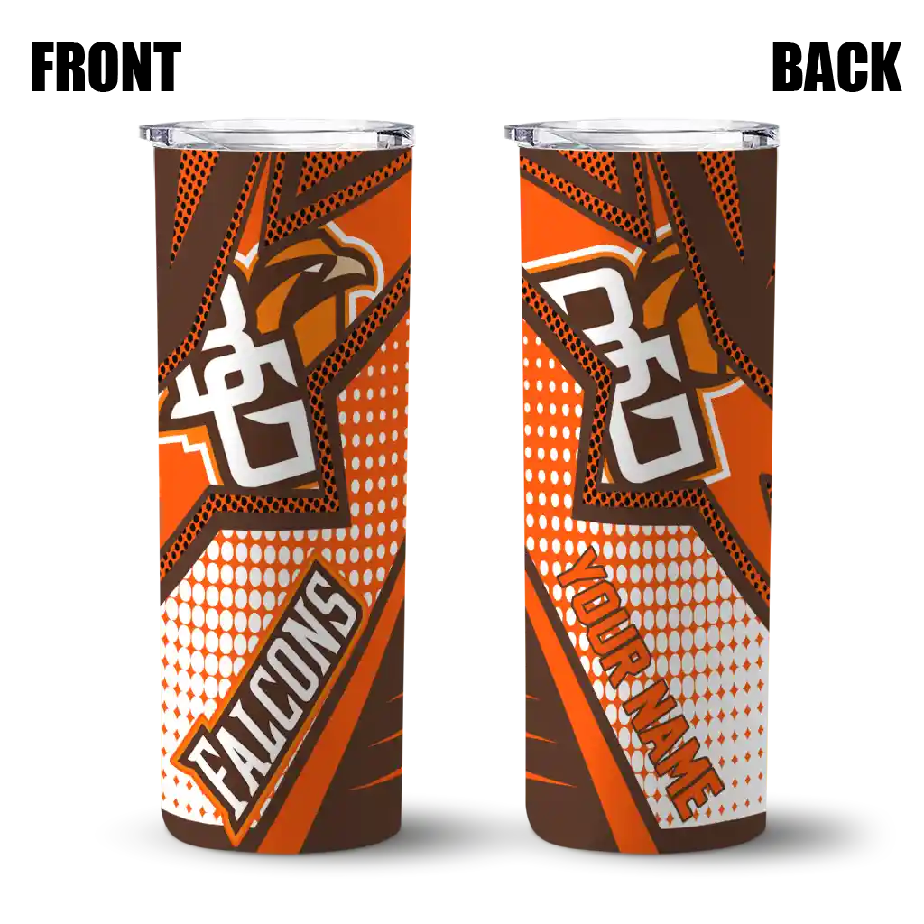 The Custom Bowling Green Falcons Star Pop Orange Black Skinny Tumbler tumbler is the perfect way to stay refreshed while showing off your pride for Bowling Green Falcons. With its double-wall insulation, your drinks stay at the right temperature for hours, whether you're enjoying a hot coffee or keeping your iced drink cold. What's inside? You’ll find 1 stainless steel tumbler, 1 clear lid, and 1 removable straw. It's the perfect blend of function and fan spirit! Ergonomically designed for comfort, made from durable stainless steel, and insulated to maintain your drink’s temperature, this tumbler is a must-have for any dedicated NCAA fan.