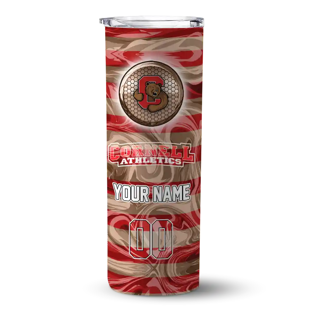 The Personalized Cornell Big Red Patterned Waves Red Skinny Tumbler tumbler is the perfect way to stay refreshed while showing off your pride for Cornell Big Red. With its double-wall insulation, your drinks stay at the right temperature for hours, whether you're enjoying a hot coffee or keeping your iced drink cold. What's inside? You’ll find 1 stainless steel tumbler, 1 clear lid, and 1 removable straw. It's the perfect blend of function and fan spirit! Ergonomically designed for comfort, made from durable stainless steel, and insulated to maintain your drink’s temperature, this tumbler is a must-have for any dedicated NCAA fan.
