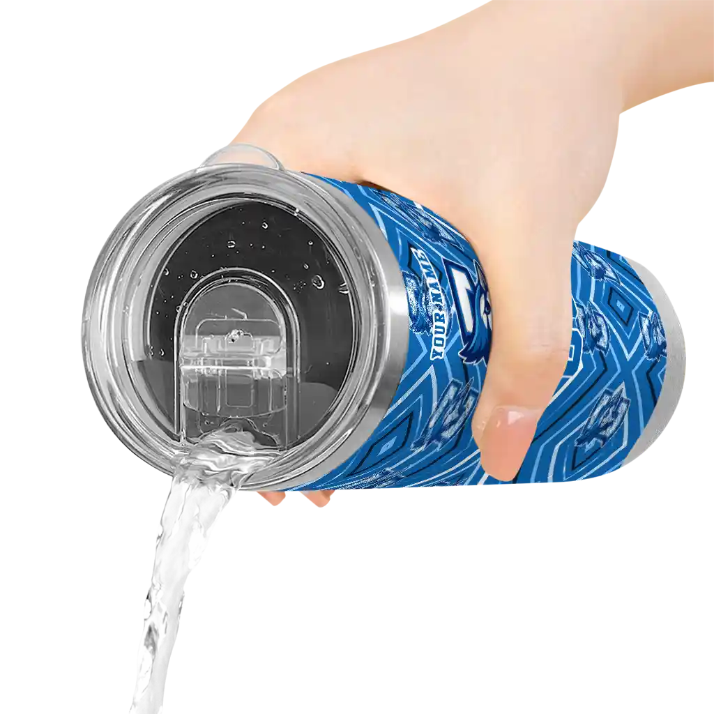 The Personalized Creighton Bluejays Spiral Burst Print Blue Skinny Tumbler tumbler is the perfect way to stay refreshed while showing off your pride for Creighton Bluejays. With its double-wall insulation, your drinks stay at the right temperature for hours, whether you're enjoying a hot coffee or keeping your iced drink cold. What's inside? You’ll find 1 stainless steel tumbler, 1 clear lid, and 1 removable straw. It's the perfect blend of function and fan spirit! Ergonomically designed for comfort, made from durable stainless steel, and insulated to maintain your drink’s temperature, this tumbler is a must-have for any dedicated NCAA fan.