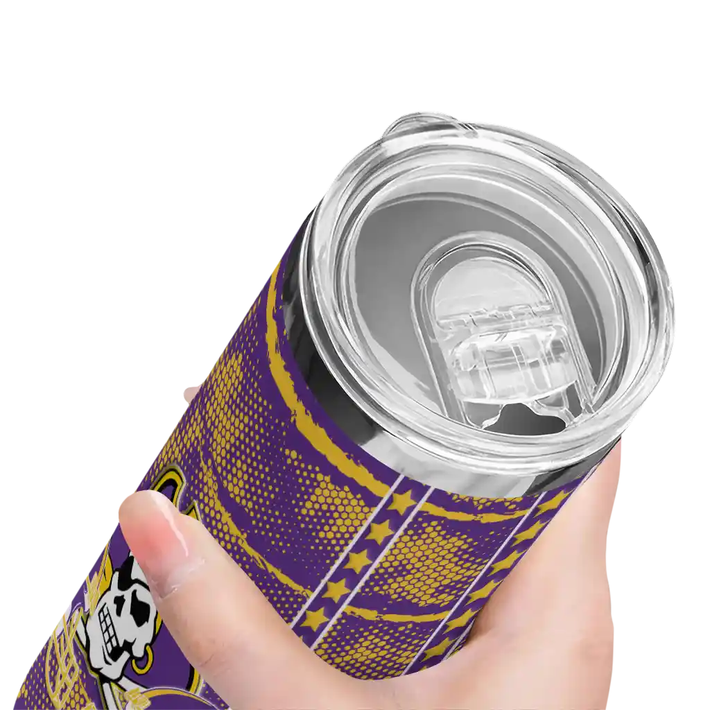 Introducing the East Carolina Pirates Tumblers from NCAA Fan Pro —where fan pride meets practical design. This slim tumbler is created for NCAA fans who want their drinks at the perfect temperature while displaying their school pride. The double-wall insulation ensures your hot beverages stay warm and your cold drinks stay chilled for hours, so you can enjoy your drinks at their best, whether you're at a game, tailgate, or on the go.