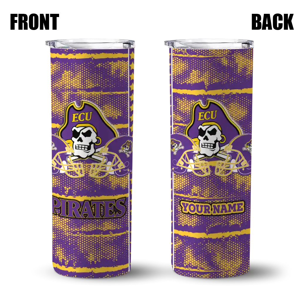 Introducing the East Carolina Pirates Tumblers  from NCAA Fan Pro —where fan pride meets practical design. This slim tumbler is created for NCAA fans who want their drinks at the perfect temperature while displaying their school pride. The double-wall insulation ensures your hot beverages stay warm and your cold drinks stay chilled for hours, so you can enjoy your drinks at their best, whether you're at a game, tailgate, or on the go.