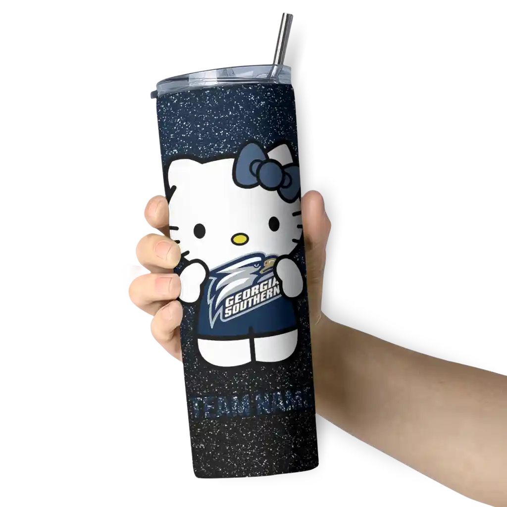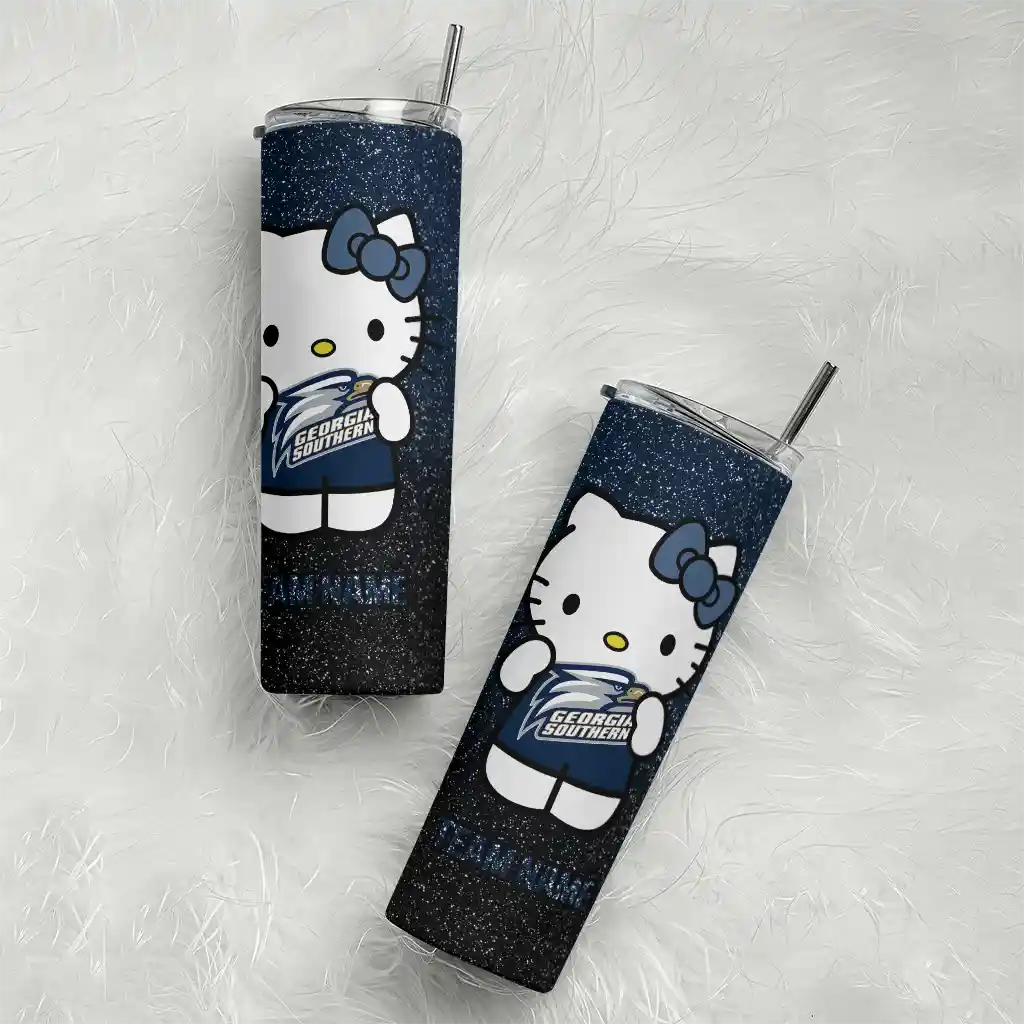 Personalized Georgia Southern Eagles Hello Kitty Blue Black Skinny Tumbler