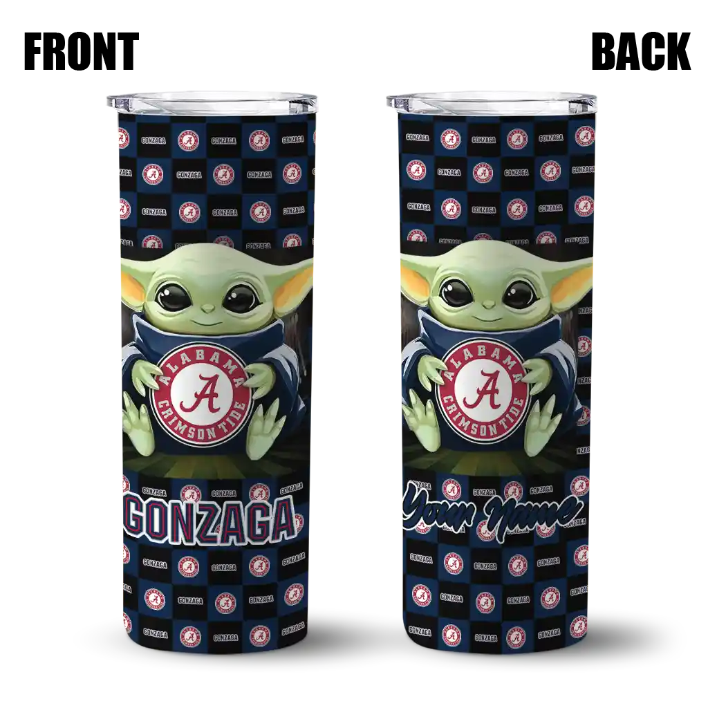 Personalized Gonzaga Bulldogs Yoda Cozy Blue Black Skinny Tumbler