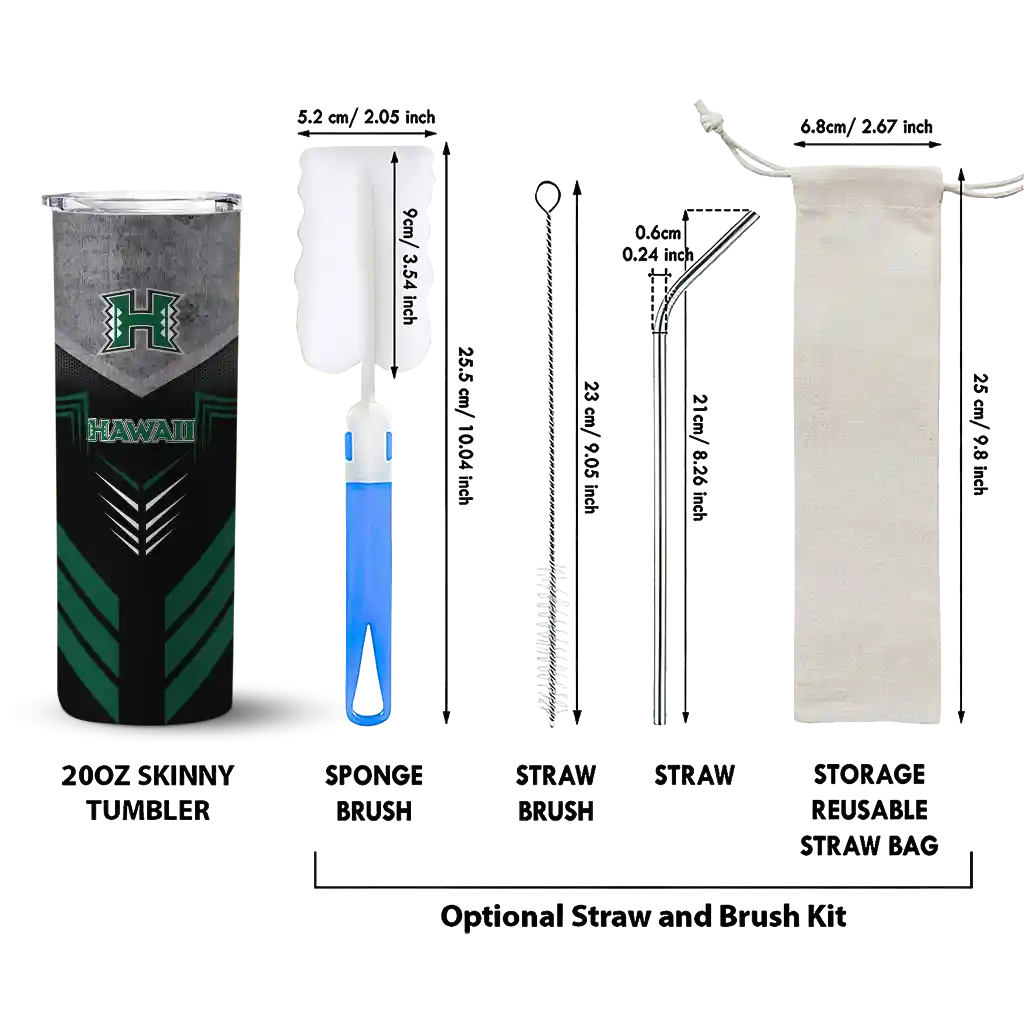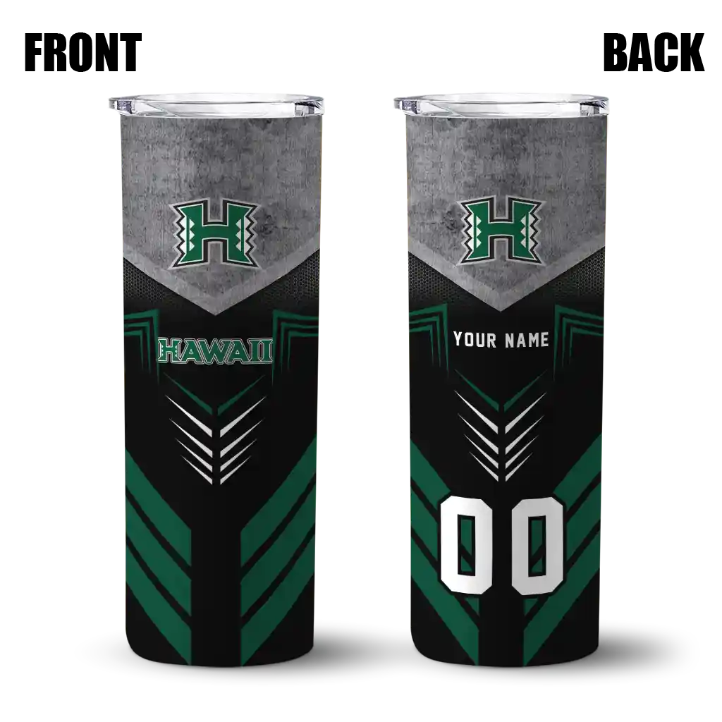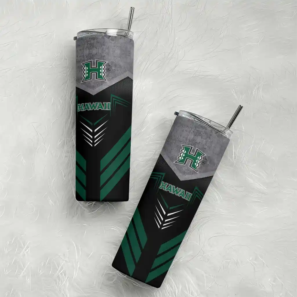 The Personalized Hawaii Rainbow Warriors Swirl Texture Green Skinny Tumbler tumbler is the perfect way to stay refreshed while showing off your pride for Hawaii Rainbow Warriors. With its double-wall insulation, your drinks stay at the right temperature for hours, whether you're enjoying a hot coffee or keeping your iced drink cold. What's inside? You’ll find 1 stainless steel tumbler, 1 clear lid, and 1 removable straw. It's the perfect blend of function and fan spirit! Ergonomically designed for comfort, made from durable stainless steel, and insulated to maintain your drink’s temperature, this tumbler is a must-have for any dedicated NCAA fan.