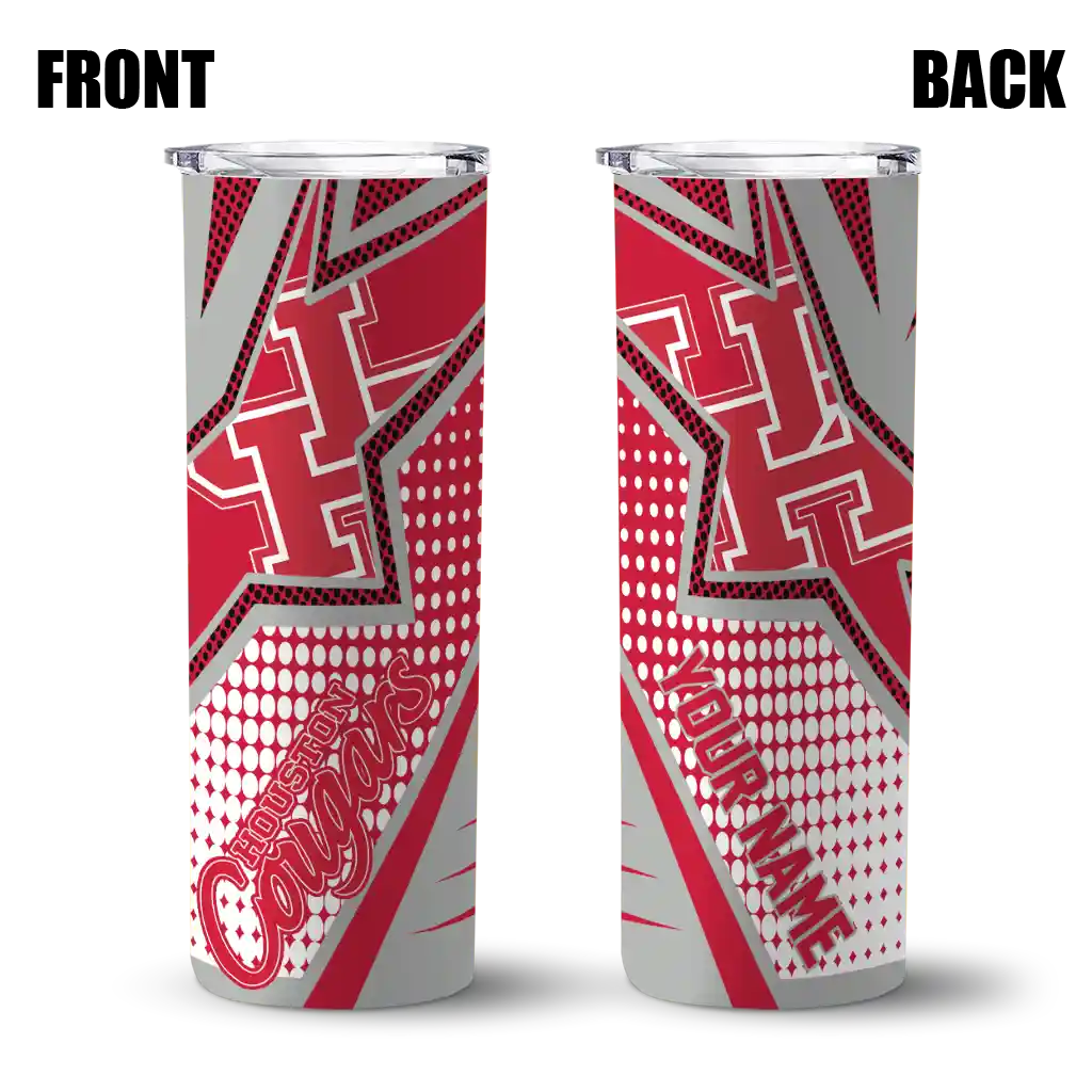 The Personalized Houston Cougars Web Stripes Red White Skinny Tumbler tumbler is the perfect way to stay refreshed while showing off your pride for Houston Cougars. With its double-wall insulation, your drinks stay at the right temperature for hours, whether you're enjoying a hot coffee or keeping your iced drink cold. What's inside? You’ll find 1 stainless steel tumbler, 1 clear lid, and 1 removable straw. It's the perfect blend of function and fan spirit! Ergonomically designed for comfort, made from durable stainless steel, and insulated to maintain your drink’s temperature, this tumbler is a must-have for any dedicated NCAA fan.