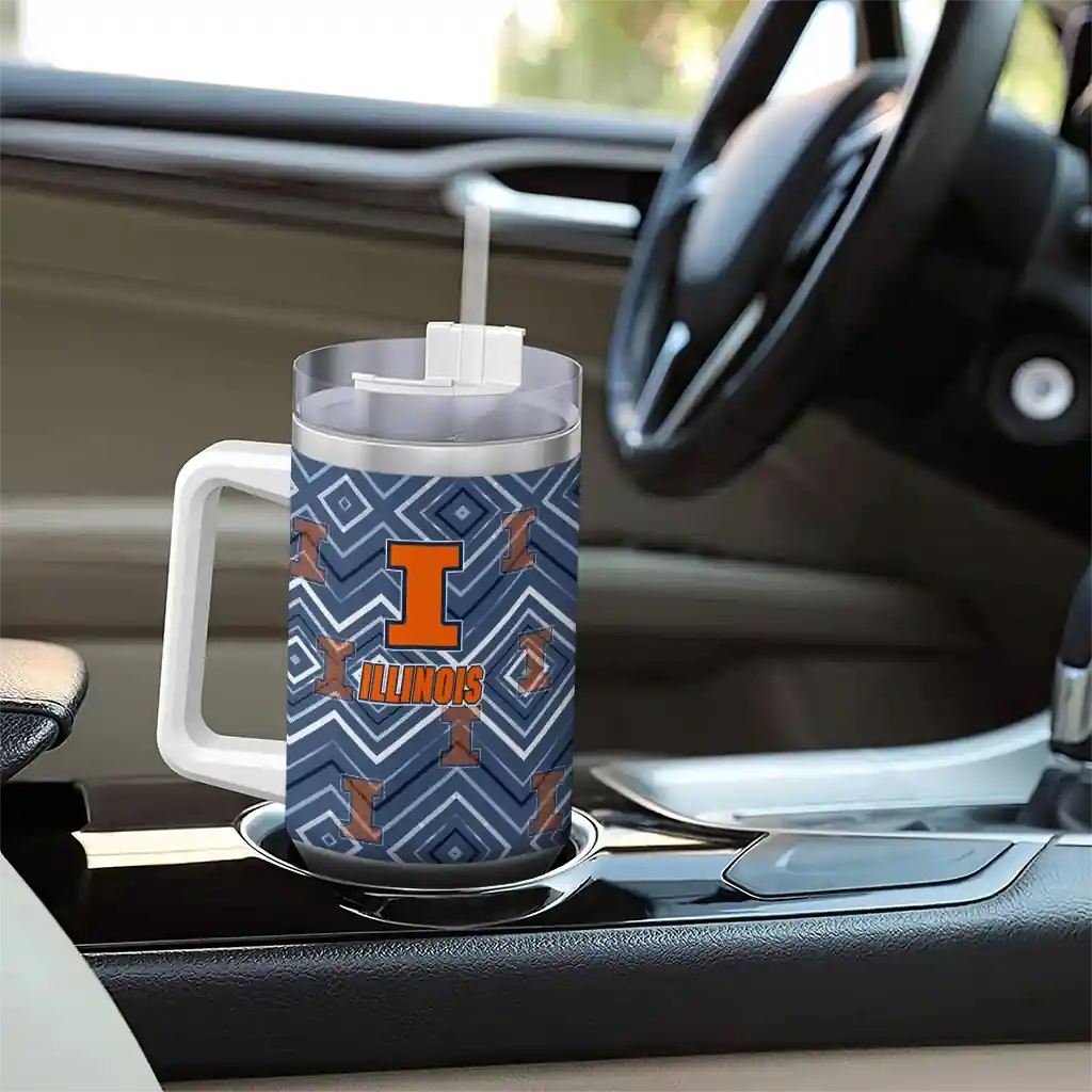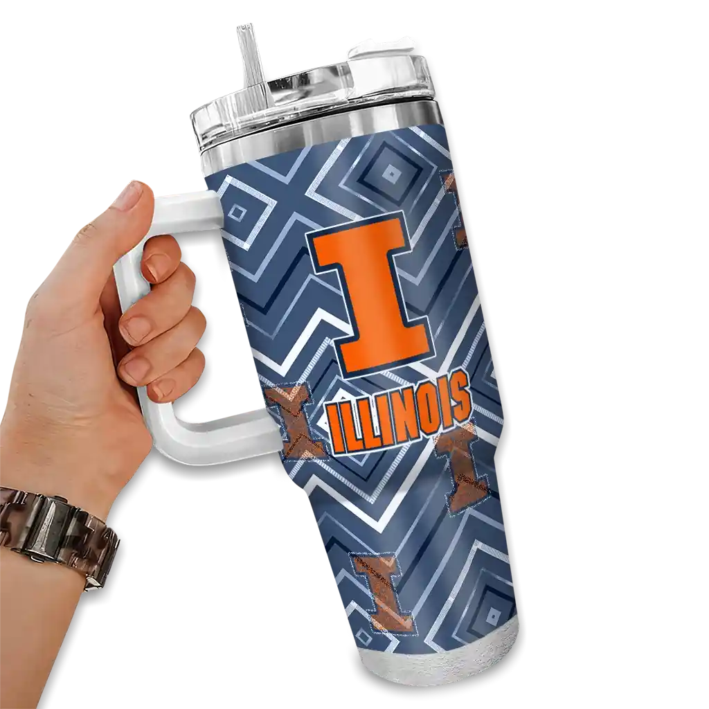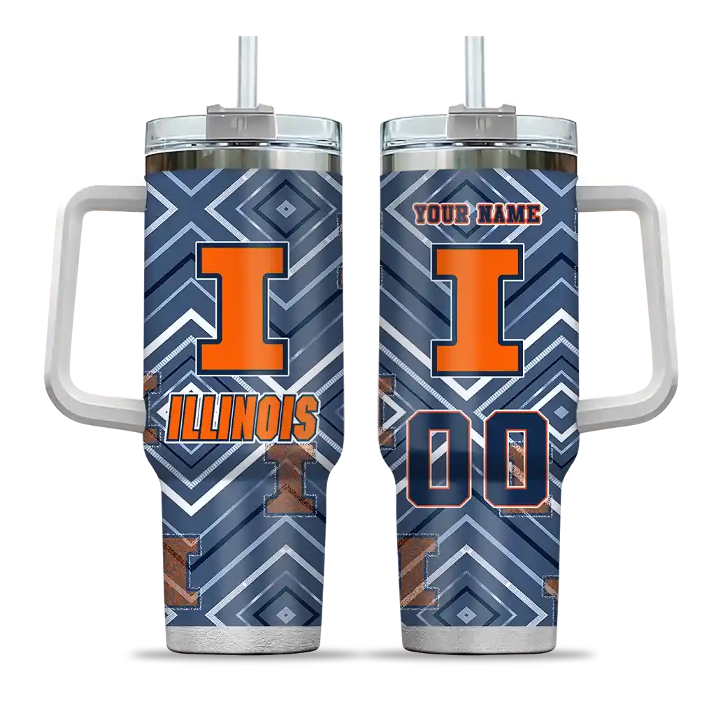 Illinois Fighting Illini Curved Tumbler – Personalized Bold Diamonds Blue