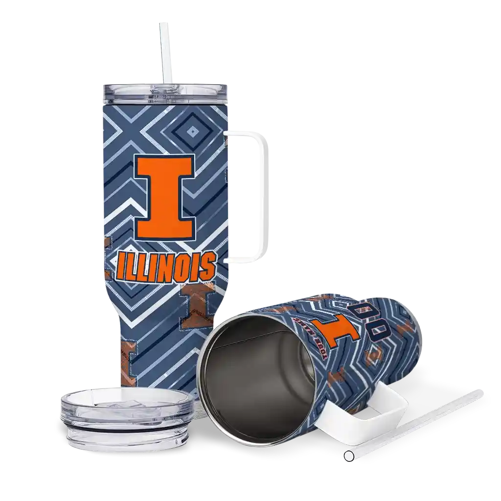 No question about it—the Customized Illinois Fighting Illini Abstract Paths Blue Curved Tumbler is the ultimate way to stay refreshed while rocking your Illinois Fighting Illini pride. From the stadium to your tailgate, or just chilling at home, this sleek tumbler makes sure you stay hydrated in style. What’s in the box? A stainless steel tumbler, clear lid, and removable straw—all the essentials for keeping your favorite drinks on point!