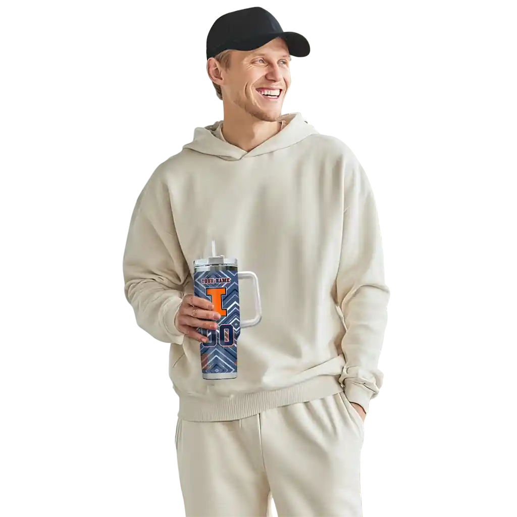 No question about it—the Customized Illinois Fighting Illini Chevron Layers Blue Curved Tumbler is the ultimate way to stay refreshed while rocking your Illinois Fighting Illini pride. From the stadium to your tailgate, or just chilling at home, this sleek tumbler makes sure you stay hydrated in style. What’s in the box? A stainless steel tumbler, clear lid, and removable straw—all the essentials for keeping your favorite drinks on point!