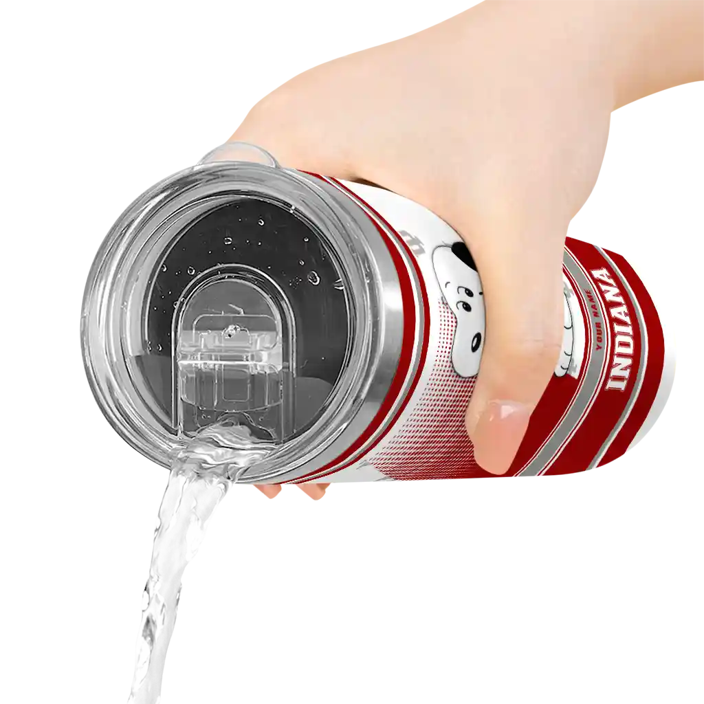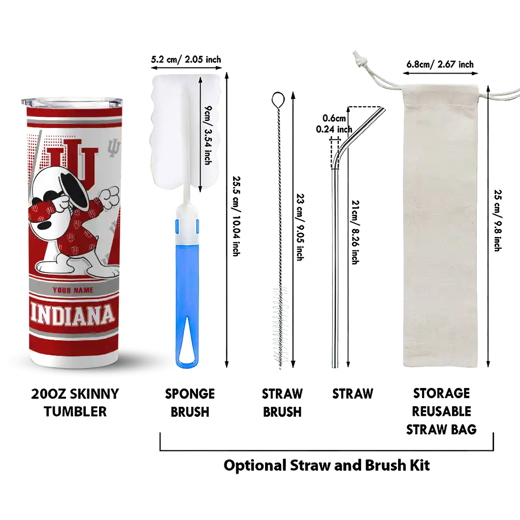 The Personalized Indiana Hoosiers Snoopy Dog Red White Skinny Tumbler tumbler is the perfect way to stay refreshed while showing off your pride for Indiana Hoosiers. With its double-wall insulation, your drinks stay at the right temperature for hours, whether you're enjoying a hot coffee or keeping your iced drink cold. What's inside? You’ll find 1 stainless steel tumbler, 1 clear lid, and 1 removable straw. It's the perfect blend of function and fan spirit! Ergonomically designed for comfort, made from durable stainless steel, and insulated to maintain your drink’s temperature, this tumbler is a must-have for any dedicated NCAA fan.