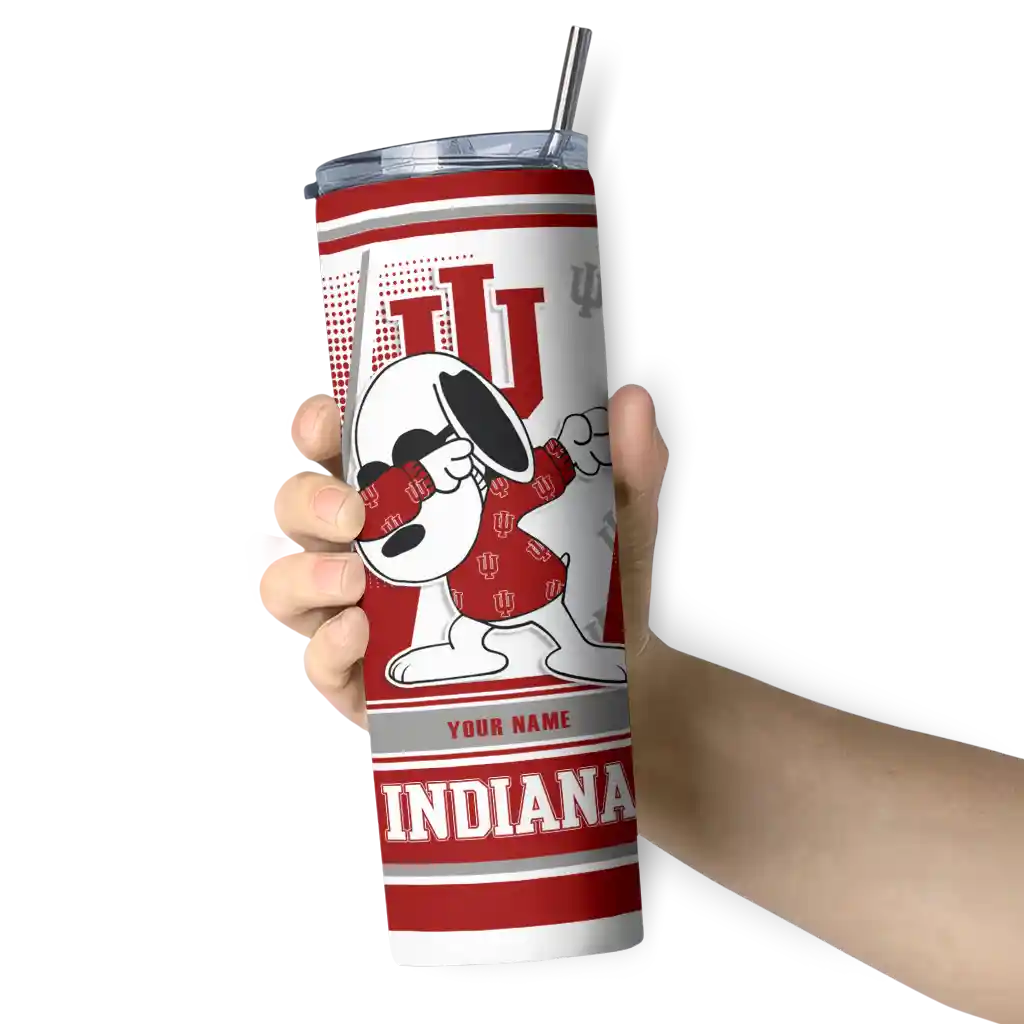 Personalized Indiana Hoosiers Snoopy Dog Red White Skinny Tumbler
