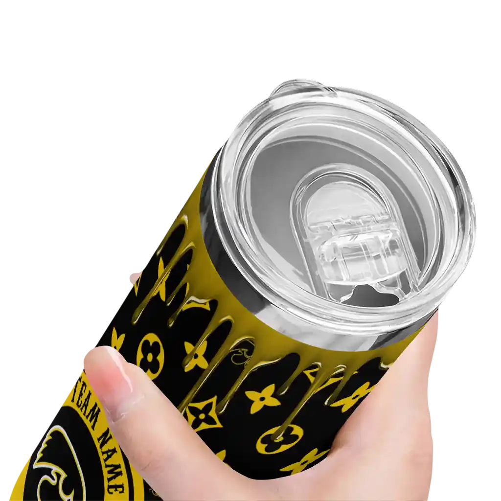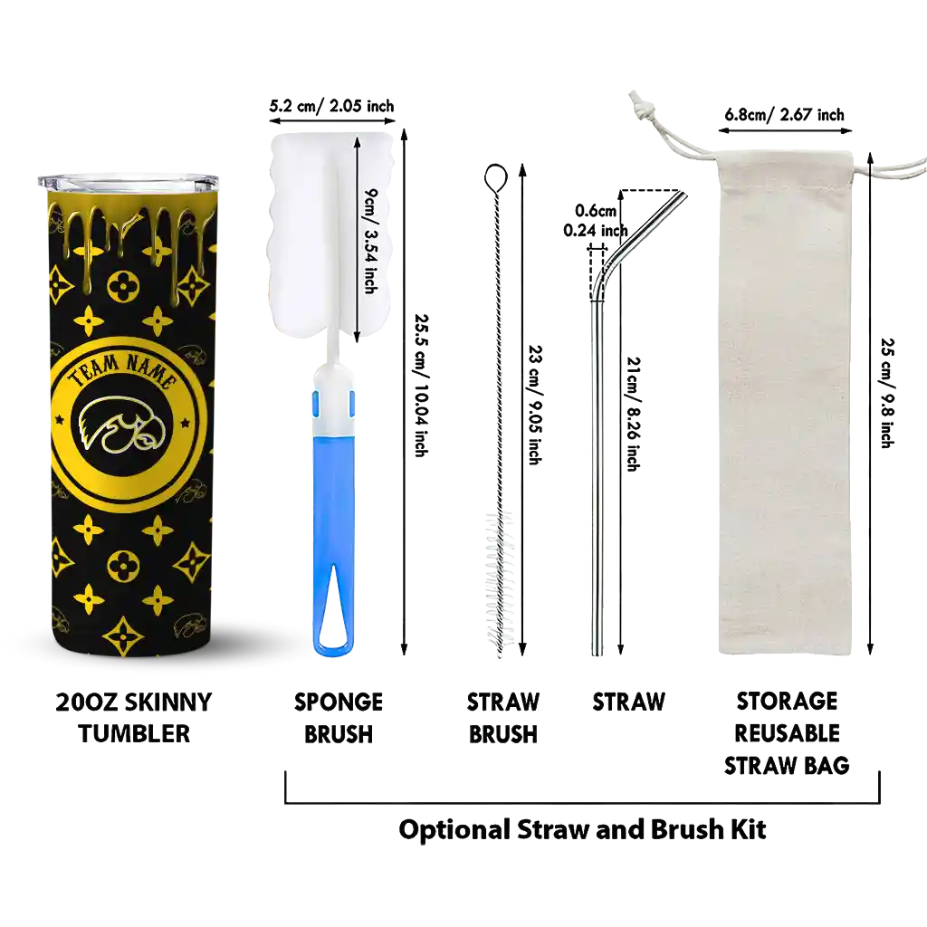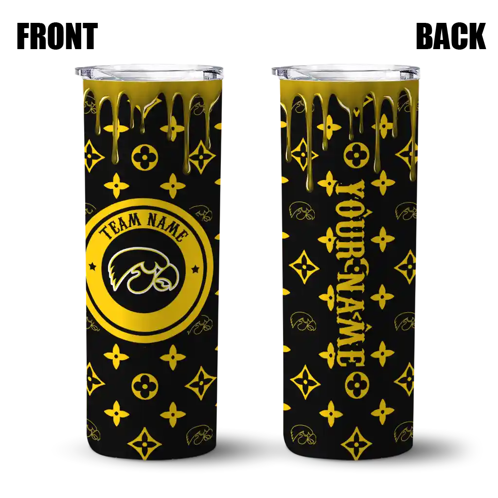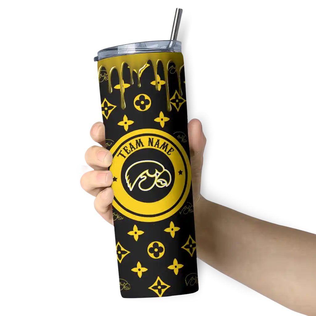 No question about it—the Custom Iowa Hawkeyes Bullseye Drips Black Curved Tumbler is the ultimate way to stay refreshed while rocking your Iowa Hawkeyes pride. From the stadium to your tailgate, or just chilling at home, this sleek tumbler makes sure you stay hydrated in style. What’s in the box? A stainless steel tumbler, clear lid, and removable straw—all the essentials for keeping your favorite drinks on point!