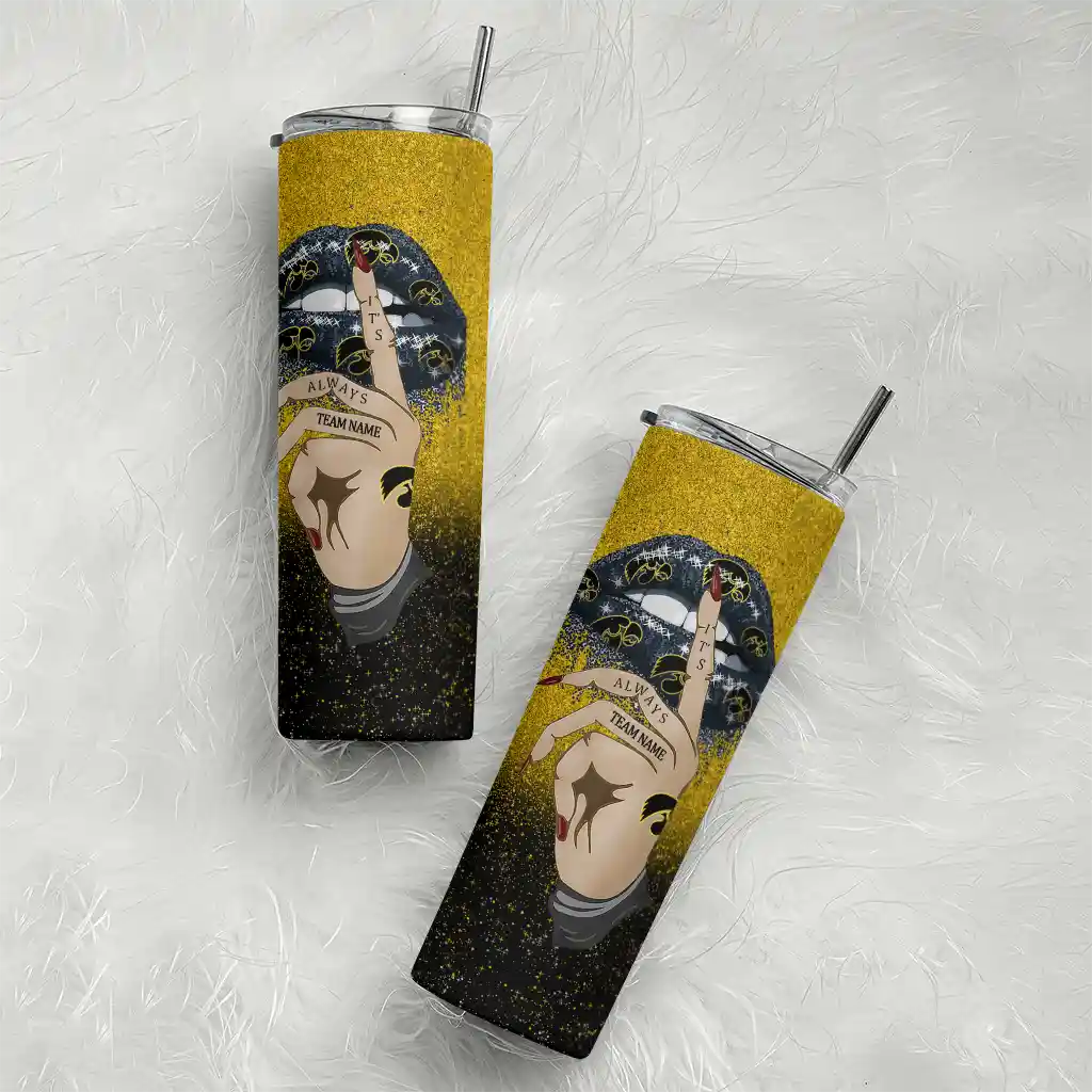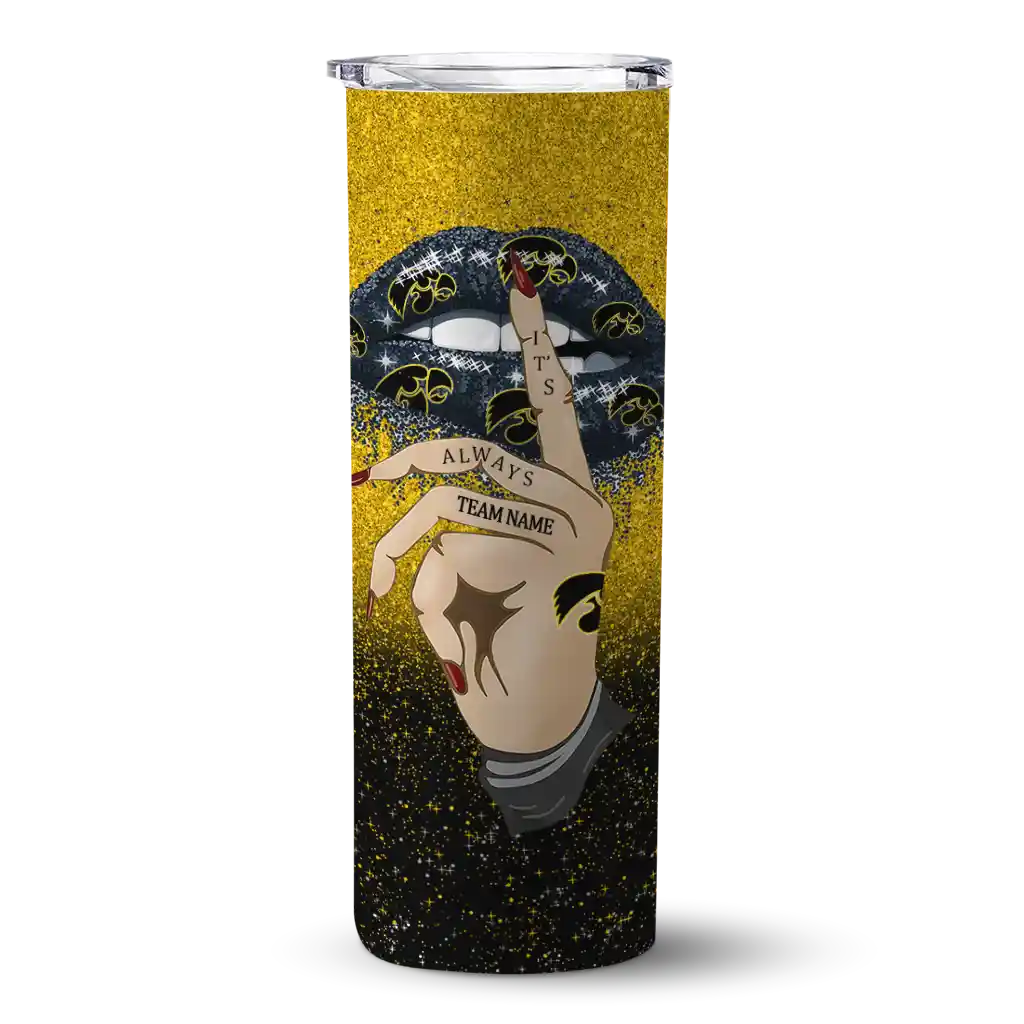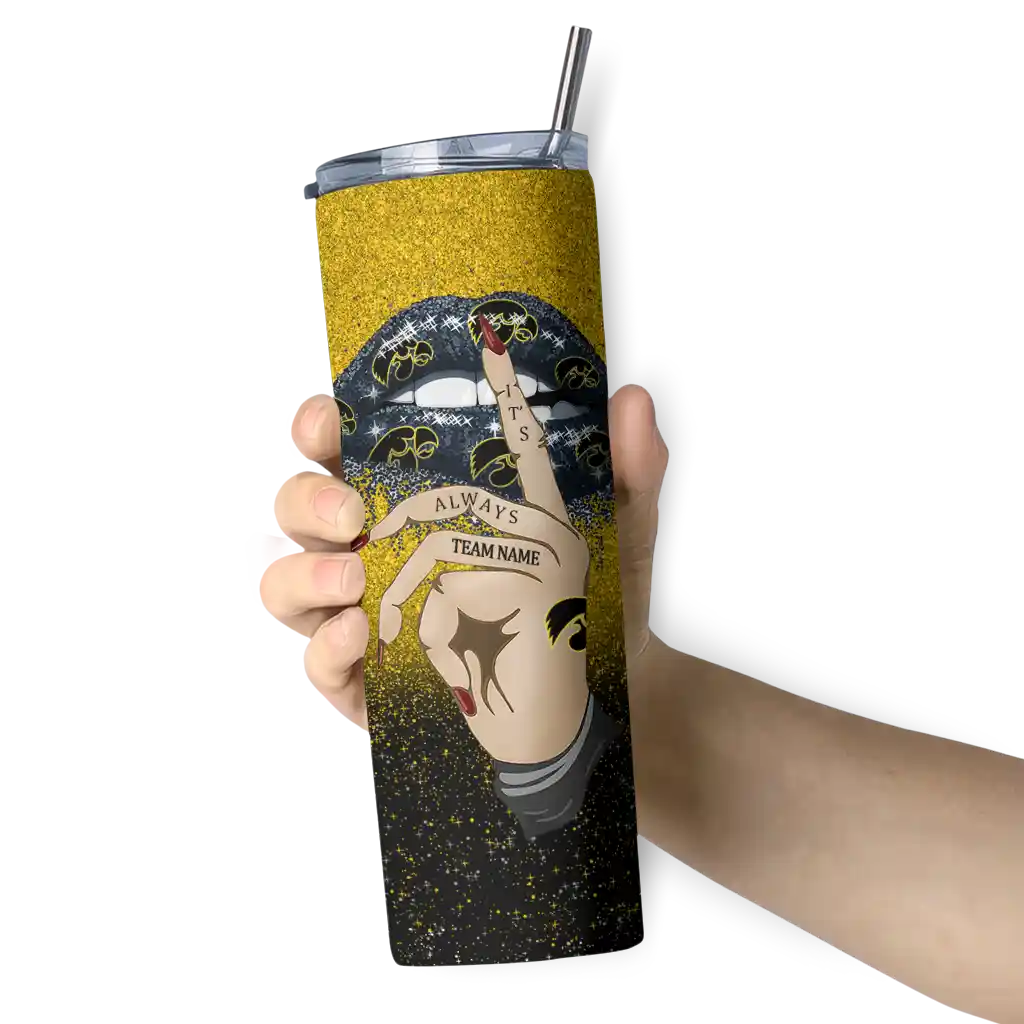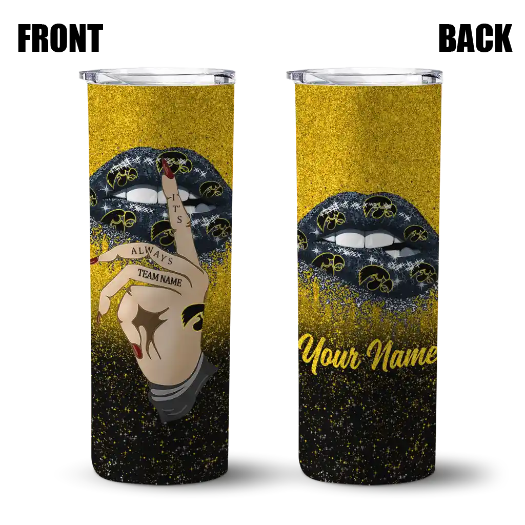 Personalized Iowa Hawkeyes Sparkle Lips Black Skinny Tumbler