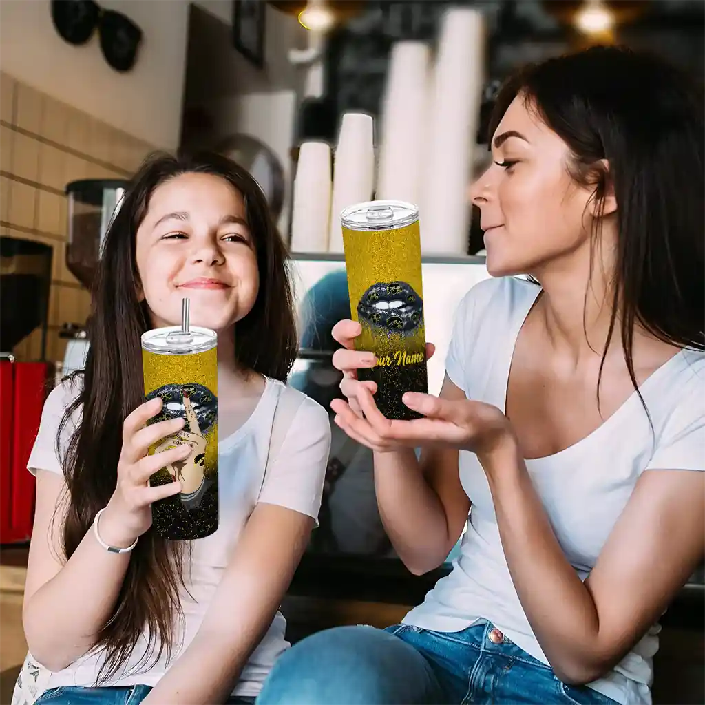 The Personalized Iowa Hawkeyes Sparkle Lips Black Skinny Tumbler tumbler is the perfect way to stay refreshed while showing off your pride for Iowa Hawkeyes. With its double-wall insulation, your drinks stay at the right temperature for hours, whether you're enjoying a hot coffee or keeping your iced drink cold. What's inside? You’ll find 1 stainless steel tumbler, 1 clear lid, and 1 removable straw. It's the perfect blend of function and fan spirit! Ergonomically designed for comfort, made from durable stainless steel, and insulated to maintain your drink’s temperature, this tumbler is a must-have for any dedicated NCAA fan.