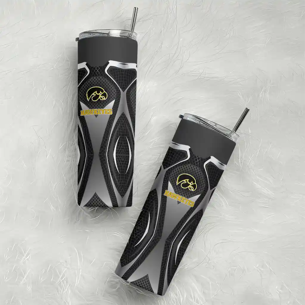 The Customized Iowa Hawkeyes Claw Marks Black White Skinny Tumbler tumbler is the perfect way to stay refreshed while showing off your pride for Iowa Hawkeyes. With its double-wall insulation, your drinks stay at the right temperature for hours, whether you're enjoying a hot coffee or keeping your iced drink cold. What's inside? You’ll find 1 stainless steel tumbler, 1 clear lid, and 1 removable straw. It's the perfect blend of function and fan spirit! Ergonomically designed for comfort, made from durable stainless steel, and insulated to maintain your drink’s temperature, this tumbler is a must-have for any dedicated NCAA fan.