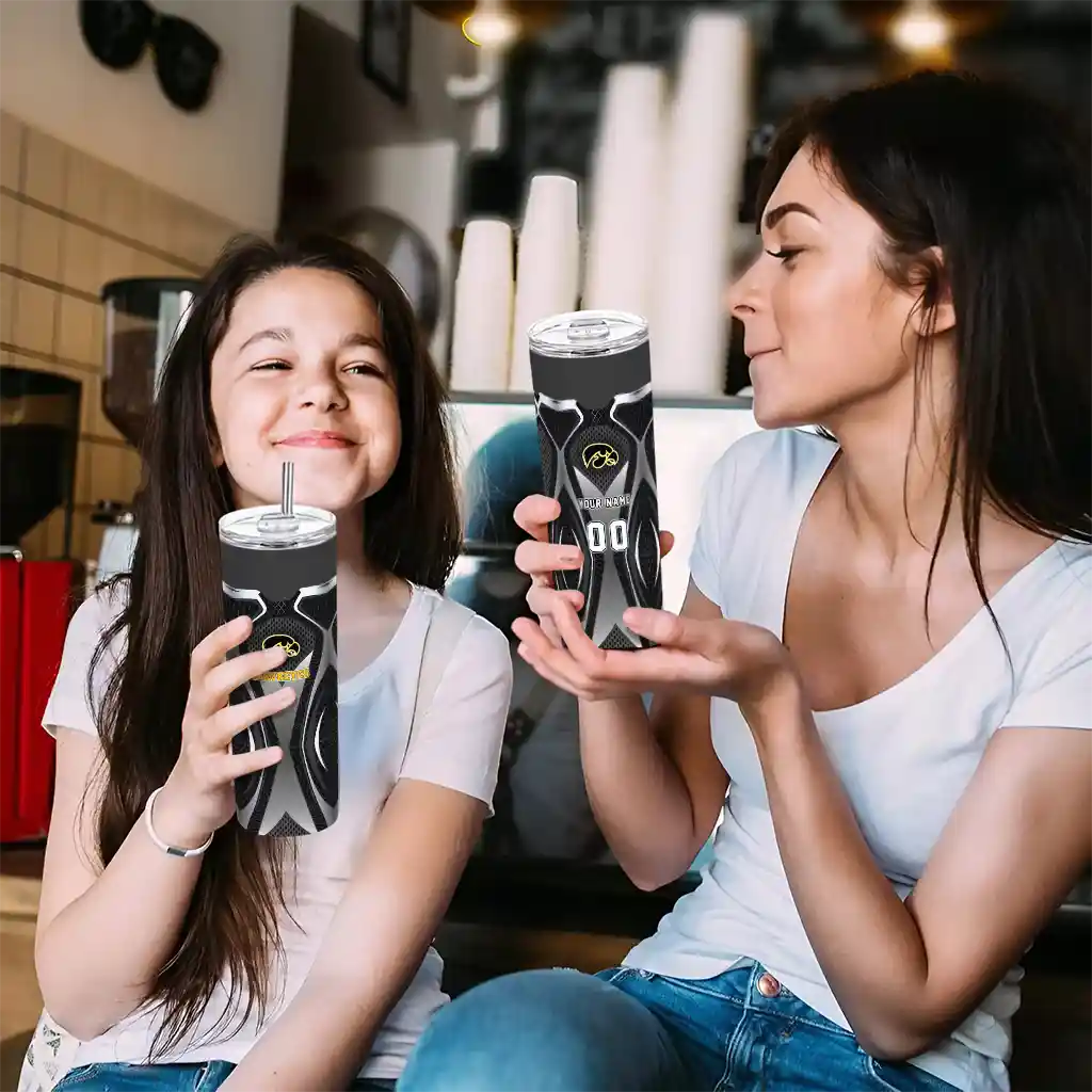 No question about it—the Customized Iowa Hawkeyes Bold Diamonds Black Curved Tumbler is the ultimate way to stay refreshed while rocking your Iowa Hawkeyes pride. From the stadium to your tailgate, or just chilling at home, this sleek tumbler makes sure you stay hydrated in style. What’s in the box? A stainless steel tumbler, clear lid, and removable straw—all the essentials for keeping your favorite drinks on point!