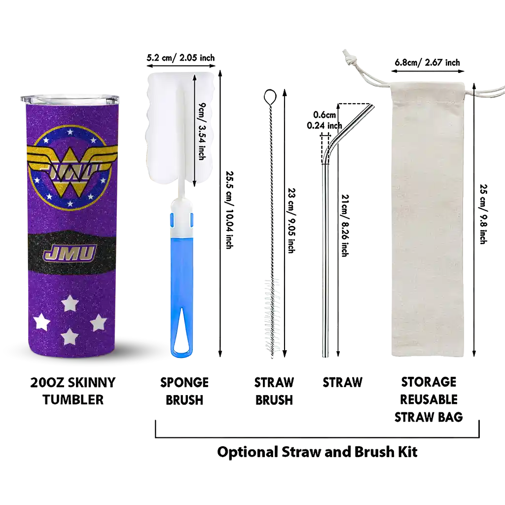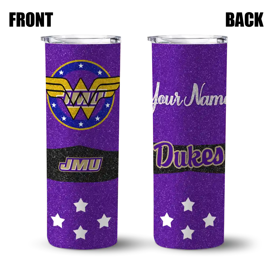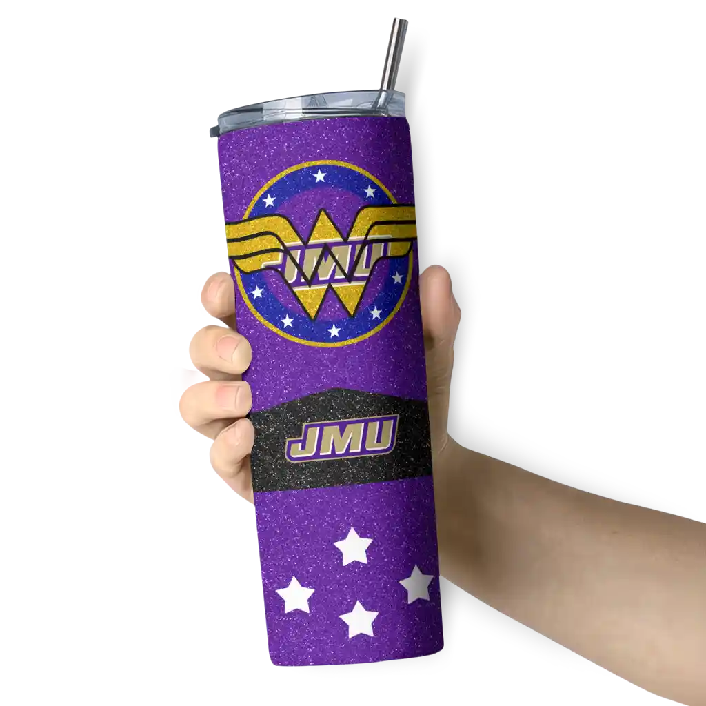 No question about it—the Customized James Madison Dukes Superman Shield Purple Gray Curved Tumbler is the ultimate way to stay refreshed while rocking your James Madison Dukes pride. From the stadium to your tailgate, or just chilling at home, this sleek tumbler makes sure you stay hydrated in style. What’s in the box? A stainless steel tumbler, clear lid, and removable straw—all the essentials for keeping your favorite drinks on point!