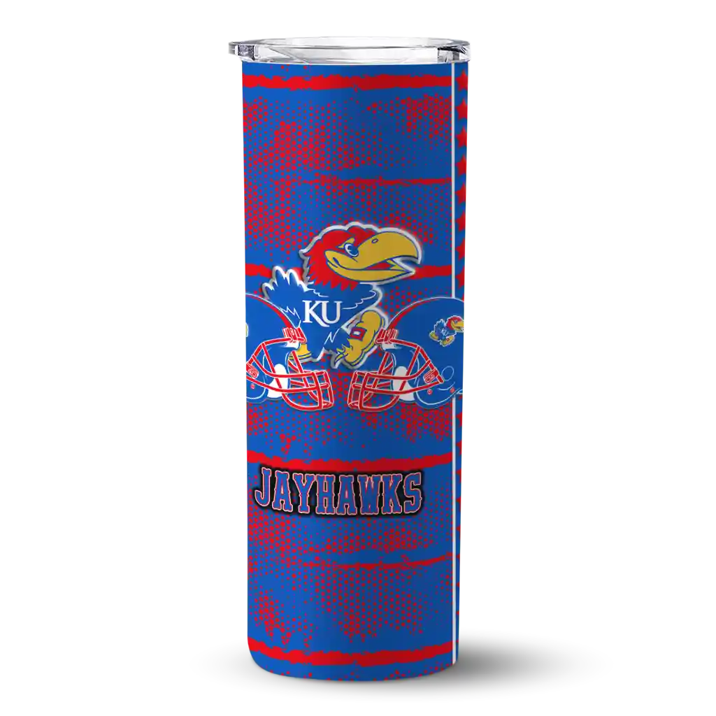 Made from premium stainless steel, this tumbler is built to last. The bold Kansas Jayhawks logo proudly represents your team, while the ergonomic design fits comfortably in your hand for easy carrying. Whether you're cheering in the stands, catching up with friends, or just out and about, this tumbler is the perfect fan accessory, combining style and function to keep you hydrated in true NCAA spirit.