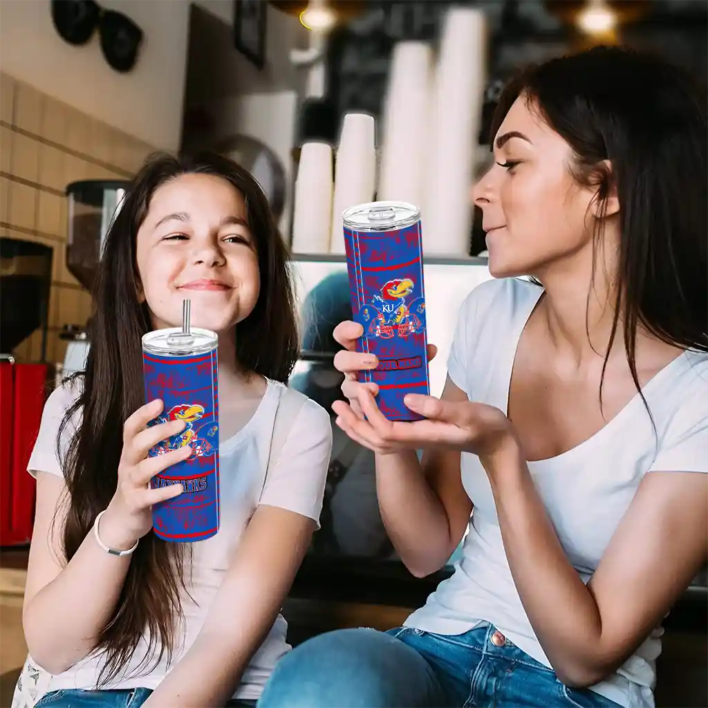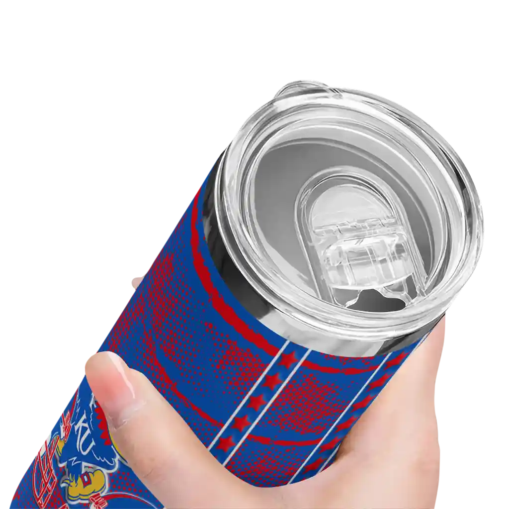 Introducing the Kansas Jayhawks Tumblers from NCAA Fan Pro —where fan pride meets practical design. This slim tumbler is created for NCAA fans who want their drinks at the perfect temperature while displaying their school pride. The double-wall insulation ensures your hot beverages stay warm and your cold drinks stay chilled for hours, so you can enjoy your drinks at their best, whether you're at a game, tailgate, or on the go.
