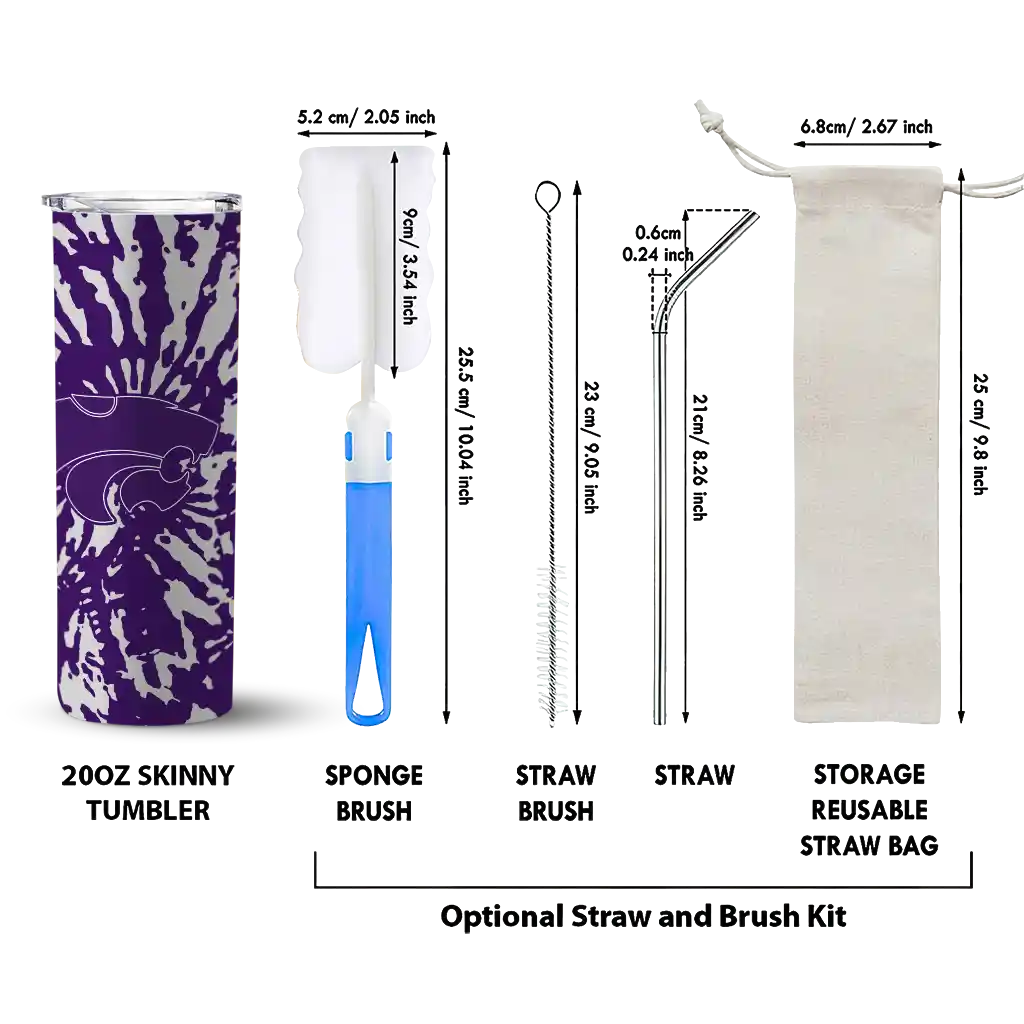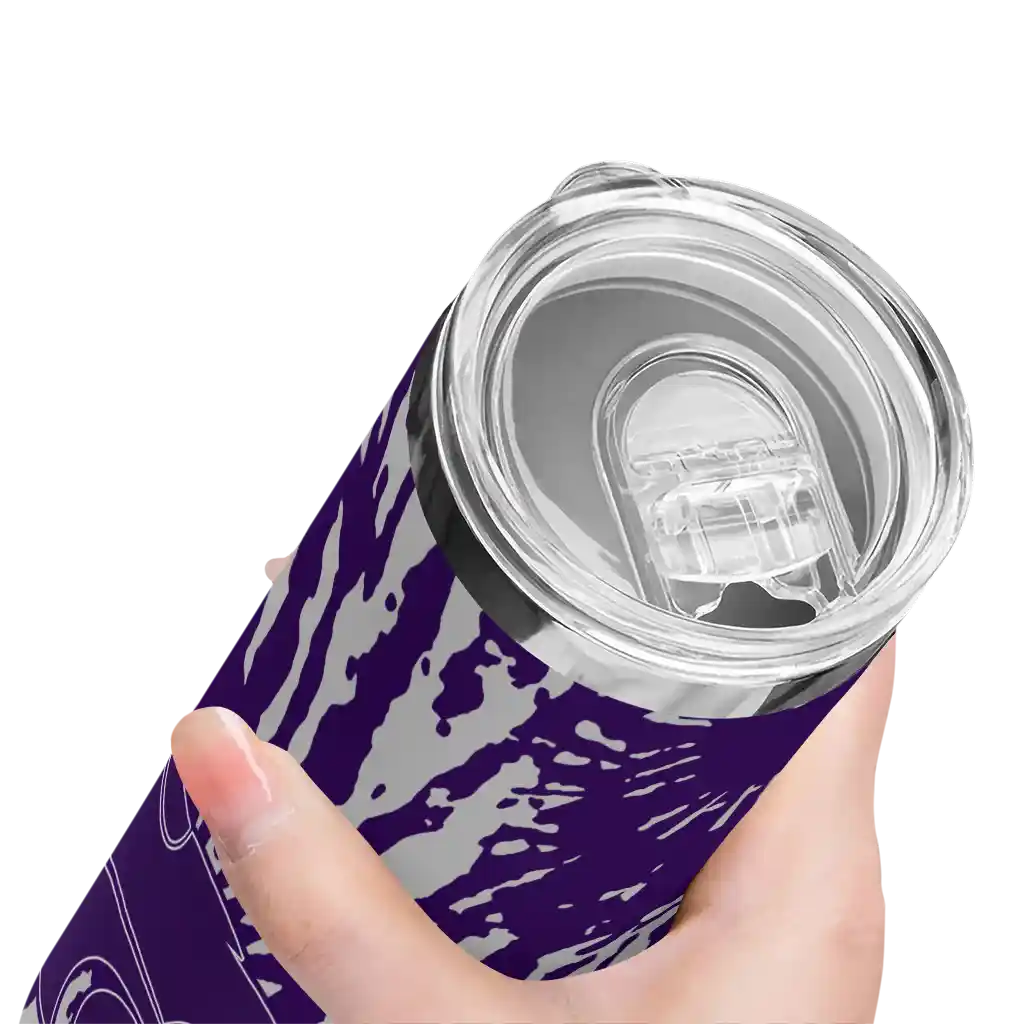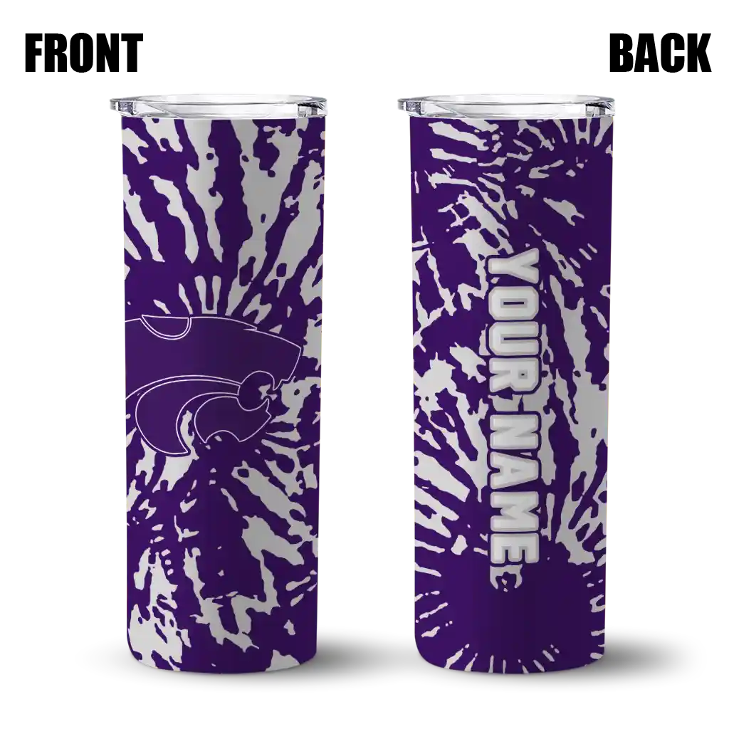 The Personalized Kansas State Wildcats Metallic Grid Purple Skinny Tumbler tumbler is the perfect way to stay refreshed while showing off your pride for Kansas State Wildcats. With its double-wall insulation, your drinks stay at the right temperature for hours, whether you're enjoying a hot coffee or keeping your iced drink cold. What's inside? You’ll find 1 stainless steel tumbler, 1 clear lid, and 1 removable straw. It's the perfect blend of function and fan spirit! Ergonomically designed for comfort, made from durable stainless steel, and insulated to maintain your drink’s temperature, this tumbler is a must-have for any dedicated NCAA fan.