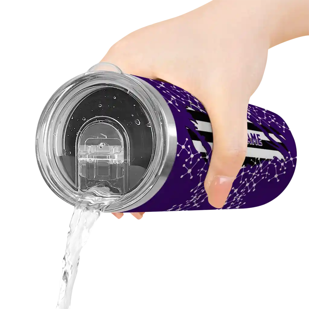 The Personalized Kansas State Wildcats Star Pop Purple Black Skinny Tumbler tumbler is the perfect way to stay refreshed while showing off your pride for Kansas State Wildcats. With its double-wall insulation, your drinks stay at the right temperature for hours, whether you're enjoying a hot coffee or keeping your iced drink cold. What's inside? You’ll find 1 stainless steel tumbler, 1 clear lid, and 1 removable straw. It's the perfect blend of function and fan spirit! Ergonomically designed for comfort, made from durable stainless steel, and insulated to maintain your drink’s temperature, this tumbler is a must-have for any dedicated NCAA fan.