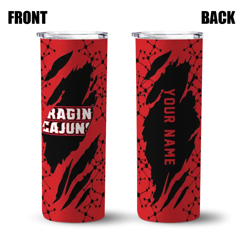 Personalized Louisiana Ragin’ Cajuns Star Pop Red Black Skinny Tumbler