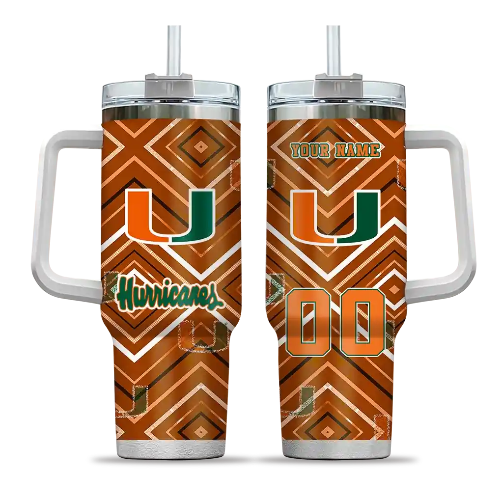 No question about it—the Customized Miami Hurricanes Geometric Prism Orange Curved Tumbler is the ultimate way to stay refreshed while rocking your Miami Hurricanes pride. From the stadium to your tailgate, or just chilling at home, this sleek tumbler makes sure you stay hydrated in style. What’s in the box? A stainless steel tumbler, clear lid, and removable straw—all the essentials for keeping your favorite drinks on point!
