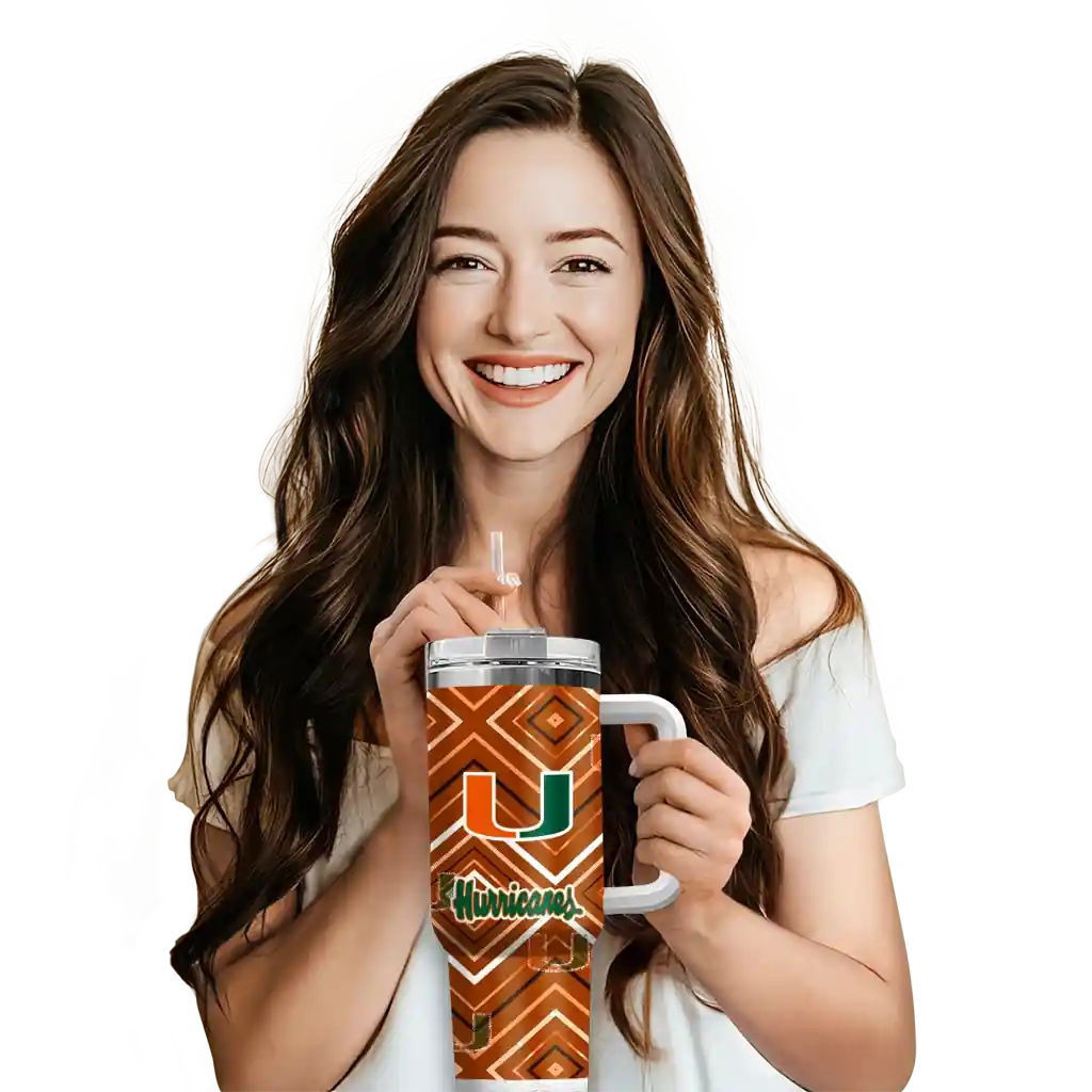 Miami Hurricanes Curved Tumbler – Personalized Bold Diamonds Orange
