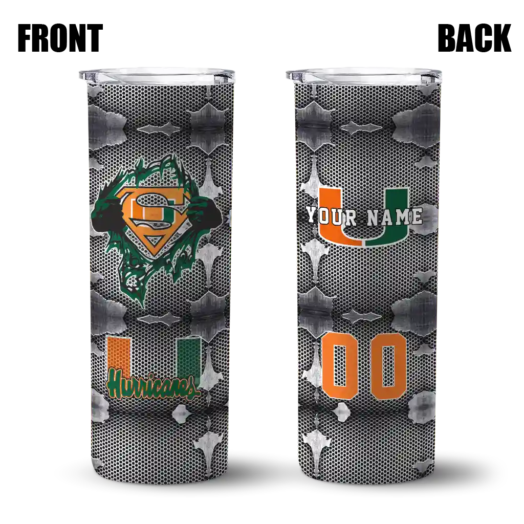 The Personalized Miami Hurricanes Chevron V Orange Gray Skinny Tumbler tumbler is the perfect way to stay refreshed while showing off your pride for Miami Hurricanes. With its double-wall insulation, your drinks stay at the right temperature for hours, whether you're enjoying a hot coffee or keeping your iced drink cold. What's inside? You’ll find 1 stainless steel tumbler, 1 clear lid, and 1 removable straw. It's the perfect blend of function and fan spirit! Ergonomically designed for comfort, made from durable stainless steel, and insulated to maintain your drink’s temperature, this tumbler is a must-have for any dedicated NCAA fan.