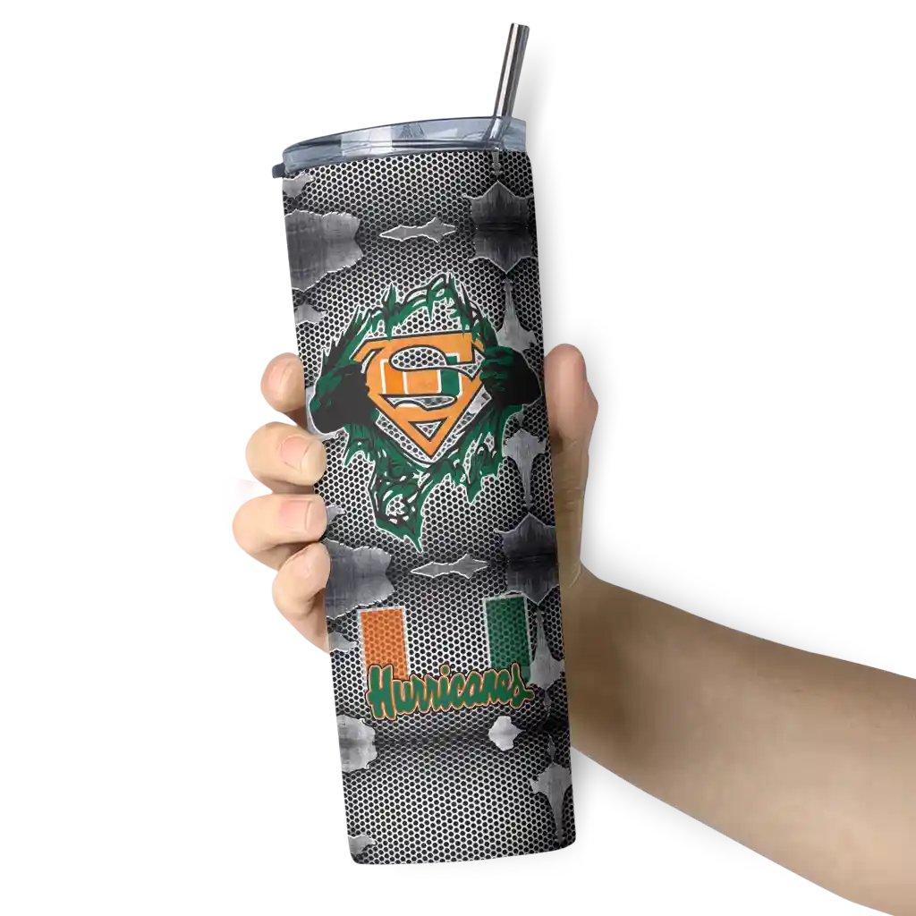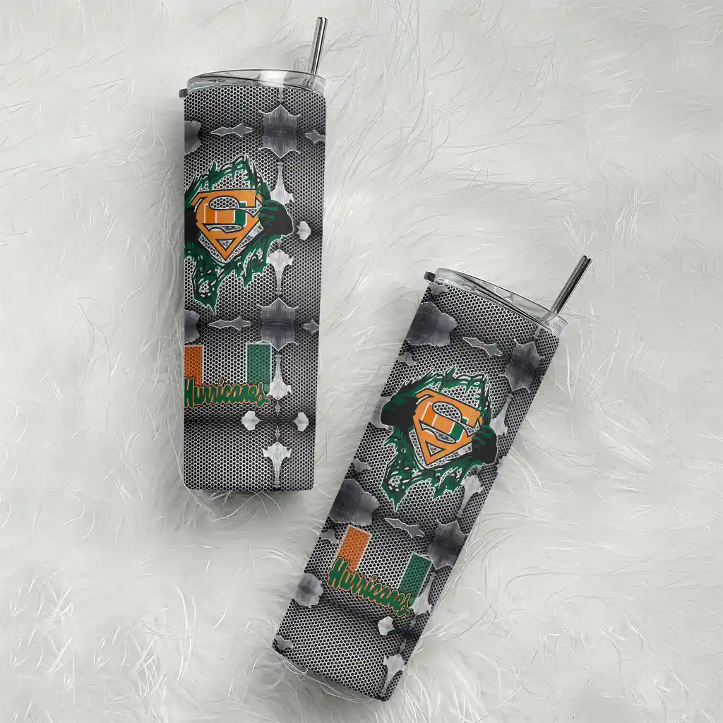 Introducing the Miami Hurricanes Tumblers from NCAA Fan Pro —where fan pride meets practical design. This slim tumbler is created for NCAA fans who want their drinks at the perfect temperature while displaying their school pride. The double-wall insulation ensures your hot beverages stay warm and your cold drinks stay chilled for hours, so you can enjoy your drinks at their best, whether you're at a game, tailgate, or on the go.
