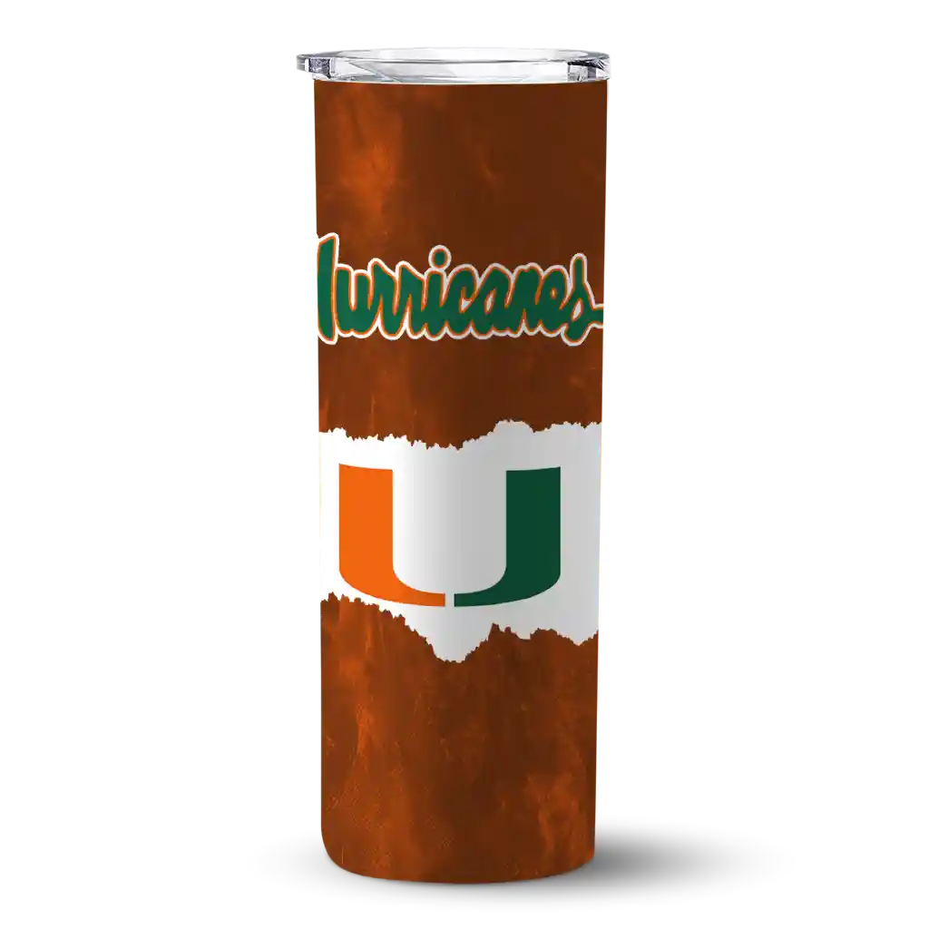 The Personalized Miami Hurricanes Torn Band Orange White Skinny Tumbler tumbler is the perfect way to stay refreshed while showing off your pride for Miami Hurricanes. With its double-wall insulation, your drinks stay at the right temperature for hours, whether you're enjoying a hot coffee or keeping your iced drink cold. What's inside? You’ll find 1 stainless steel tumbler, 1 clear lid, and 1 removable straw. It's the perfect blend of function and fan spirit! Ergonomically designed for comfort, made from durable stainless steel, and insulated to maintain your drink’s temperature, this tumbler is a must-have for any dedicated NCAA fan.