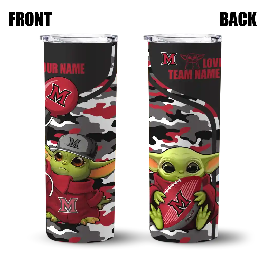 Personalized Miami RedHawks Yoda Camo Red Black Skinny Tumbler