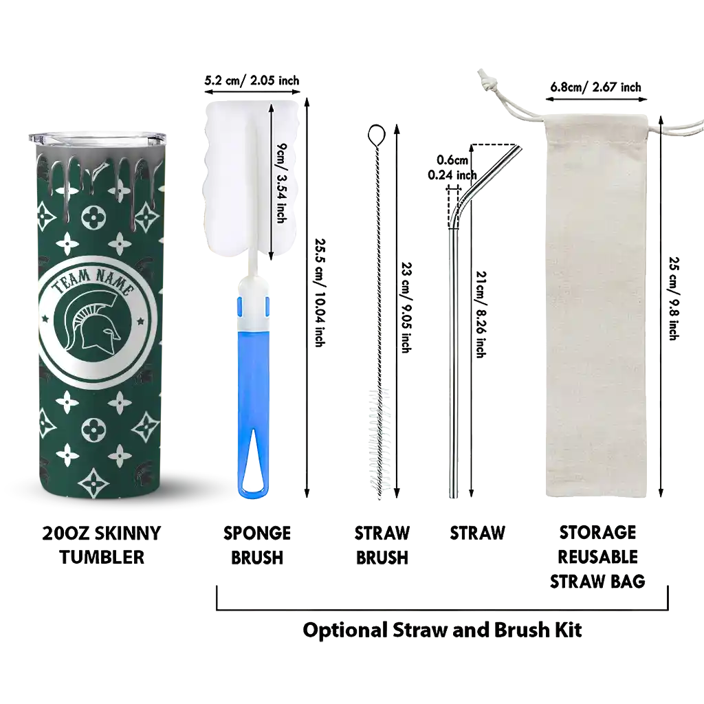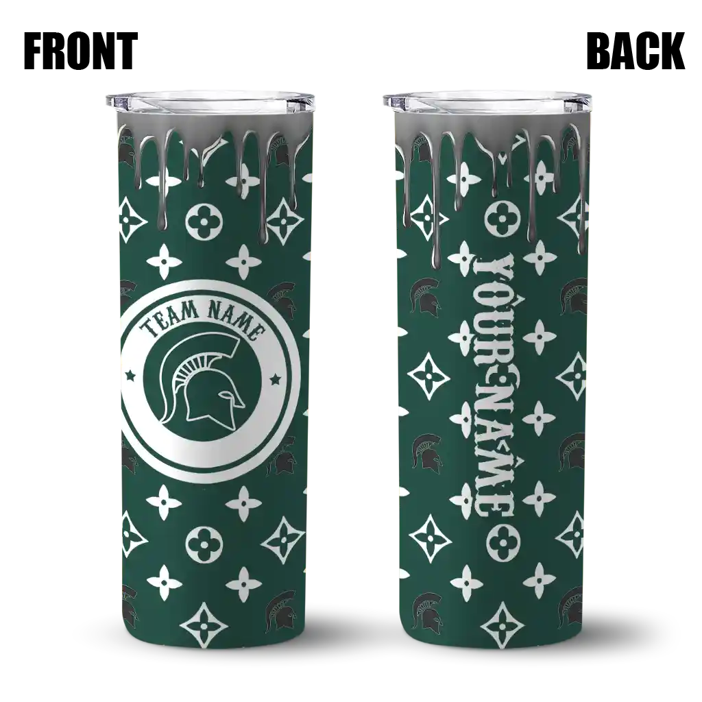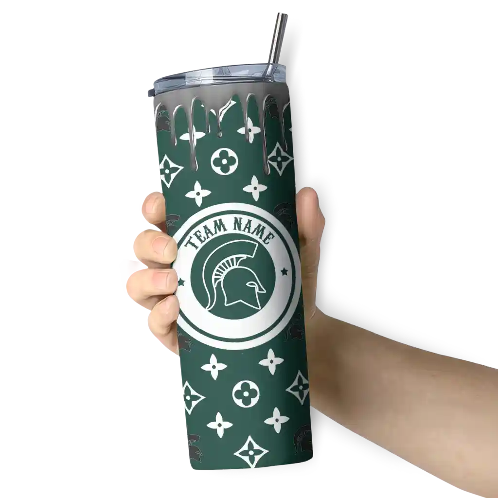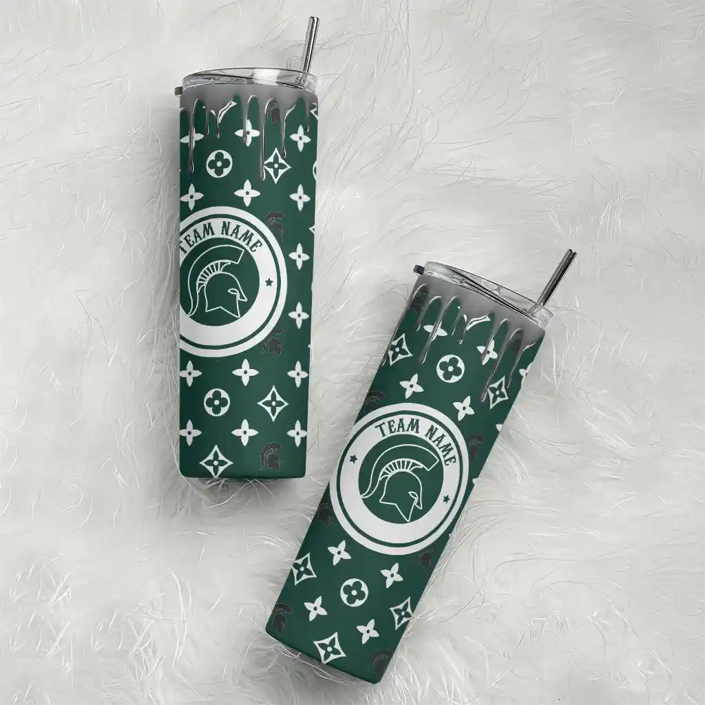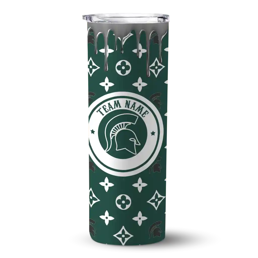 No question about it—the Custom Michigan State Spartans Bullseye Drips Green Curved Tumbler is the ultimate way to stay refreshed while rocking your Michigan State Spartans pride. From the stadium to your tailgate, or just chilling at home, this sleek tumbler makes sure you stay hydrated in style. What’s in the box? A stainless steel tumbler, clear lid, and removable straw—all the essentials for keeping your favorite drinks on point!