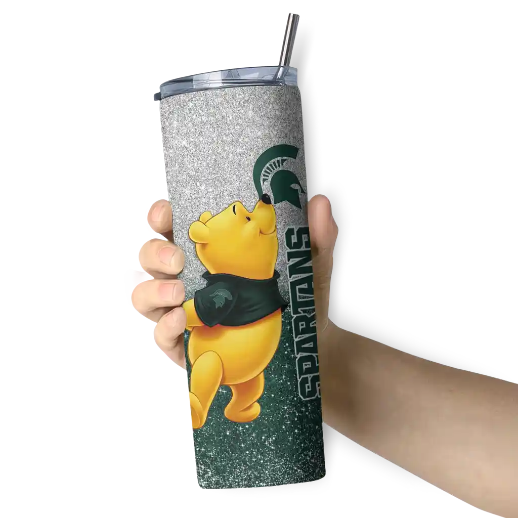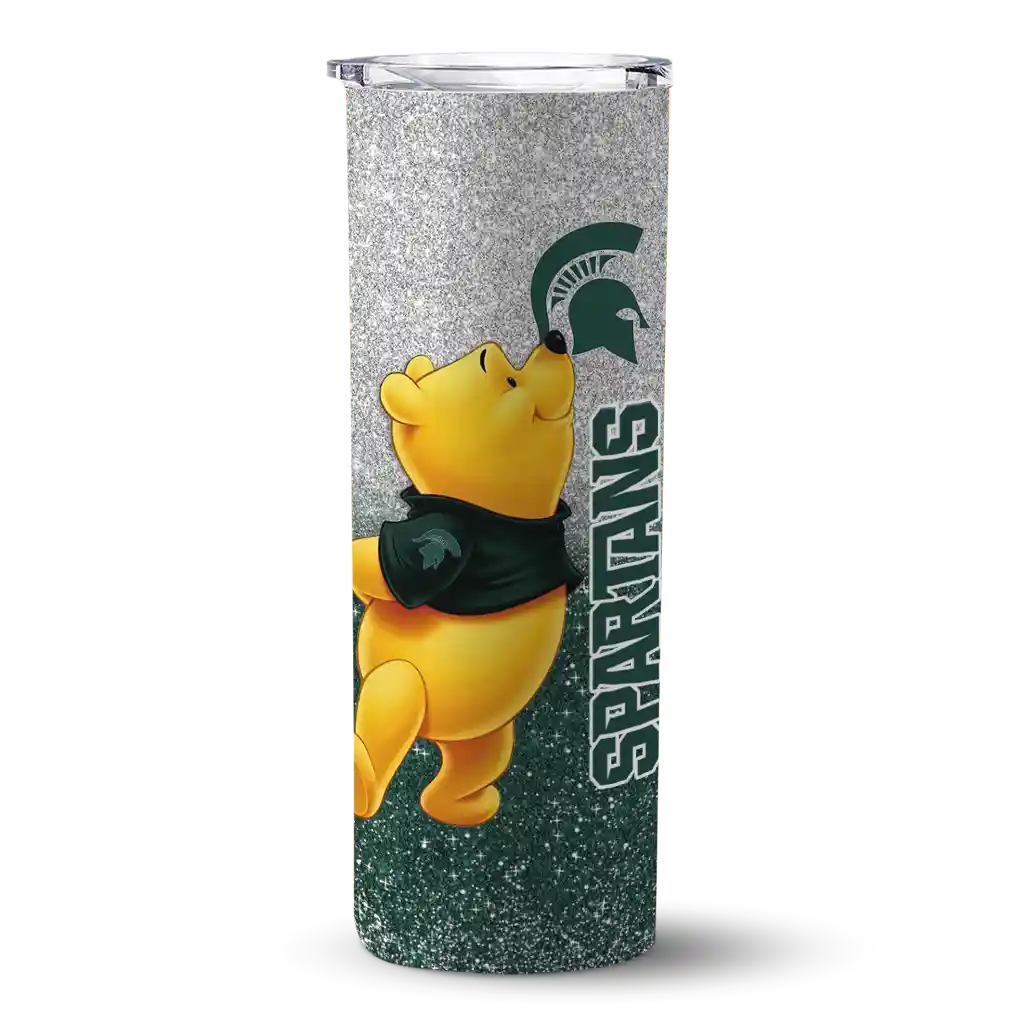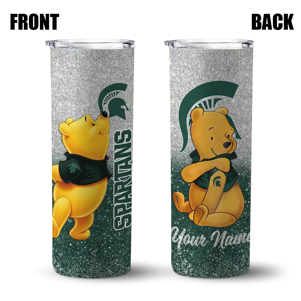 Personalized Michigan State Spartans Winnie the Pooh Green Gray Skinny Tumbler