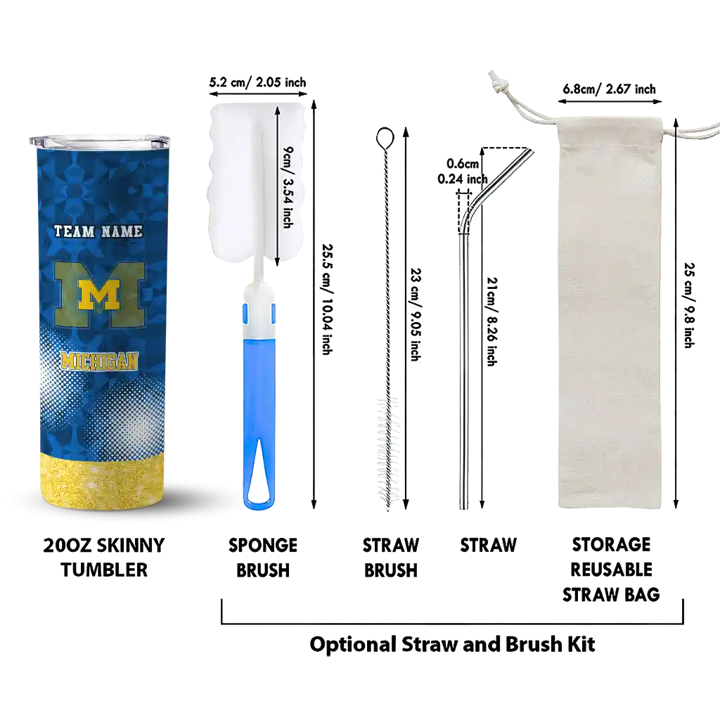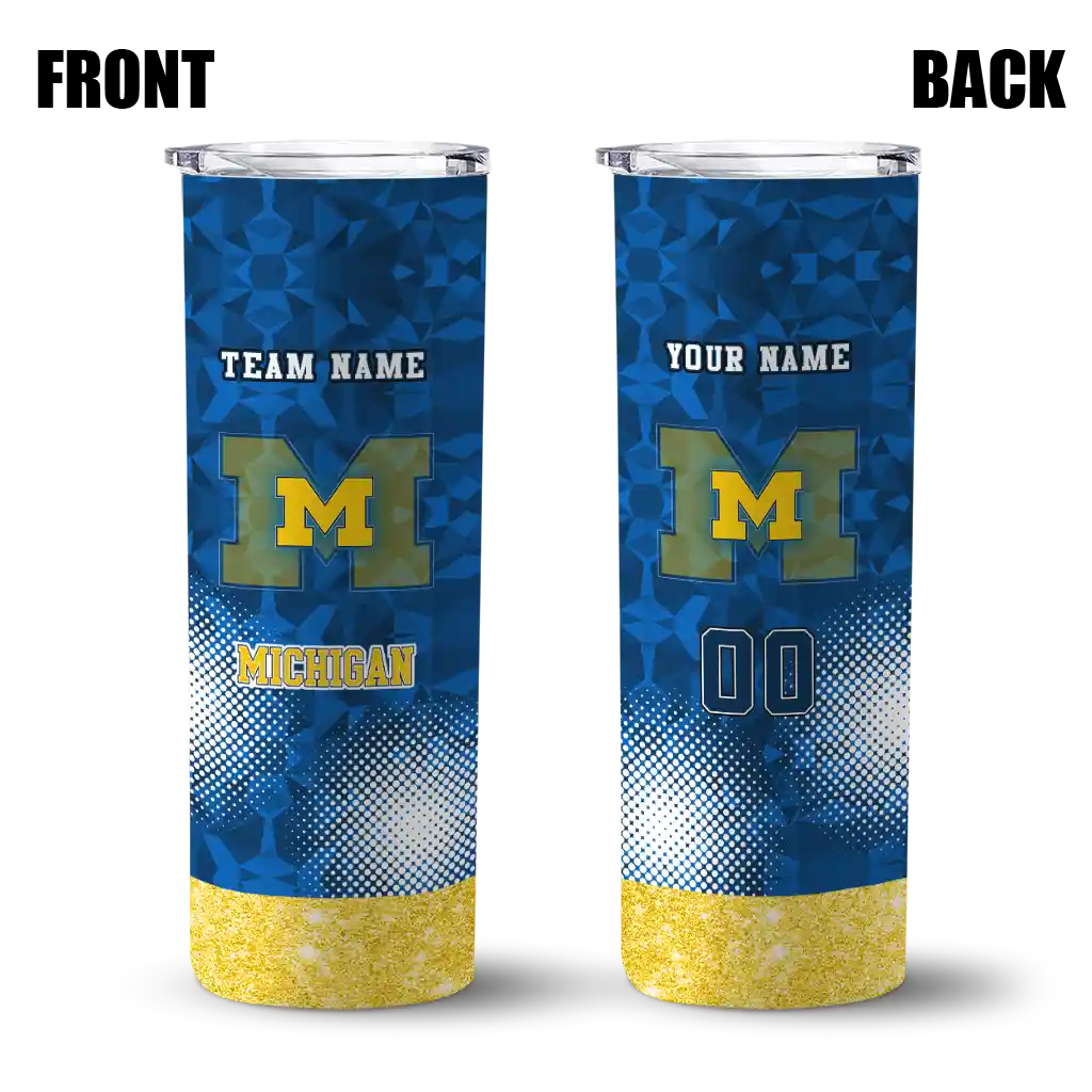 The Michigan Wolverines Radiant Glitter Blue Skinny Tumbler tumbler is the perfect way to stay refreshed while showing off your pride for Michigan Wolverines. With its double-wall insulation, your drinks stay at the right temperature for hours, whether you're enjoying a hot coffee or keeping your iced drink cold. What's inside? You’ll find 1 stainless steel tumbler, 1 clear lid, and 1 removable straw. It's the perfect blend of function and fan spirit! Ergonomically designed for comfort, made from durable stainless steel, and insulated to maintain your drink’s temperature, this tumbler is a must-have for any dedicated NCAA fan.