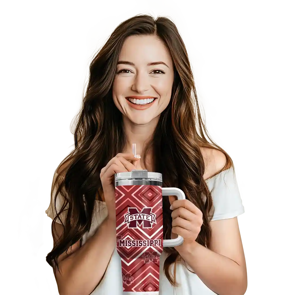 Mississippi State Bulldogs Curved Tumbler – Personalized Bold Diamonds Maroon